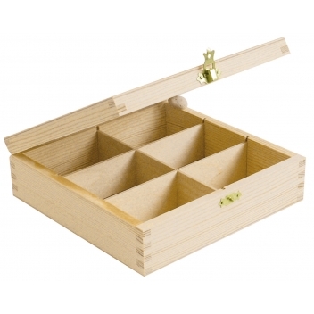 Boite à thé/tisane en bois 6 compartiments 21.2 x 21.2 H 8,5 cm;Cette boîte à thé/tisane en bois, à 6 compartiments, de 21.2 x 21.2 x 8,5 cm sera parfaite pour ranger vos assortiments de thé et tisane. Conseil...;Boite à thé/tisane en bois 6 compartiments 21.2 x 21.2 H 8,5 cm;Cette boîte à thé/tisane en bois, à 6 compartiments, de 21.2 x 21.2 x 8,5 cm sera parfaite pour ranger vos assortiments de thé et tisane. Conseil déco: peinture acrylique, vernis-collage, collage de strass, miroirs, motifs caoutchouc mousse, petites déco en bois, etc.;dimensions intérieures;partie du bas: 19.9 x 19.9 cm H 5.7 cm;taille d'un compartiment: 6.3 x 9.9 H 5.7 cm;partie du haut (couvercle): 19.9 x 19.9 H 2.2 cm;total Hauteur: 7.9 cm
