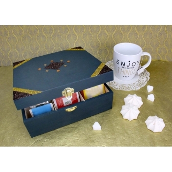 Boite à thé/tisane en bois 6 compartiments 21.2 x 21.2 H 8,5 cm ref 7548