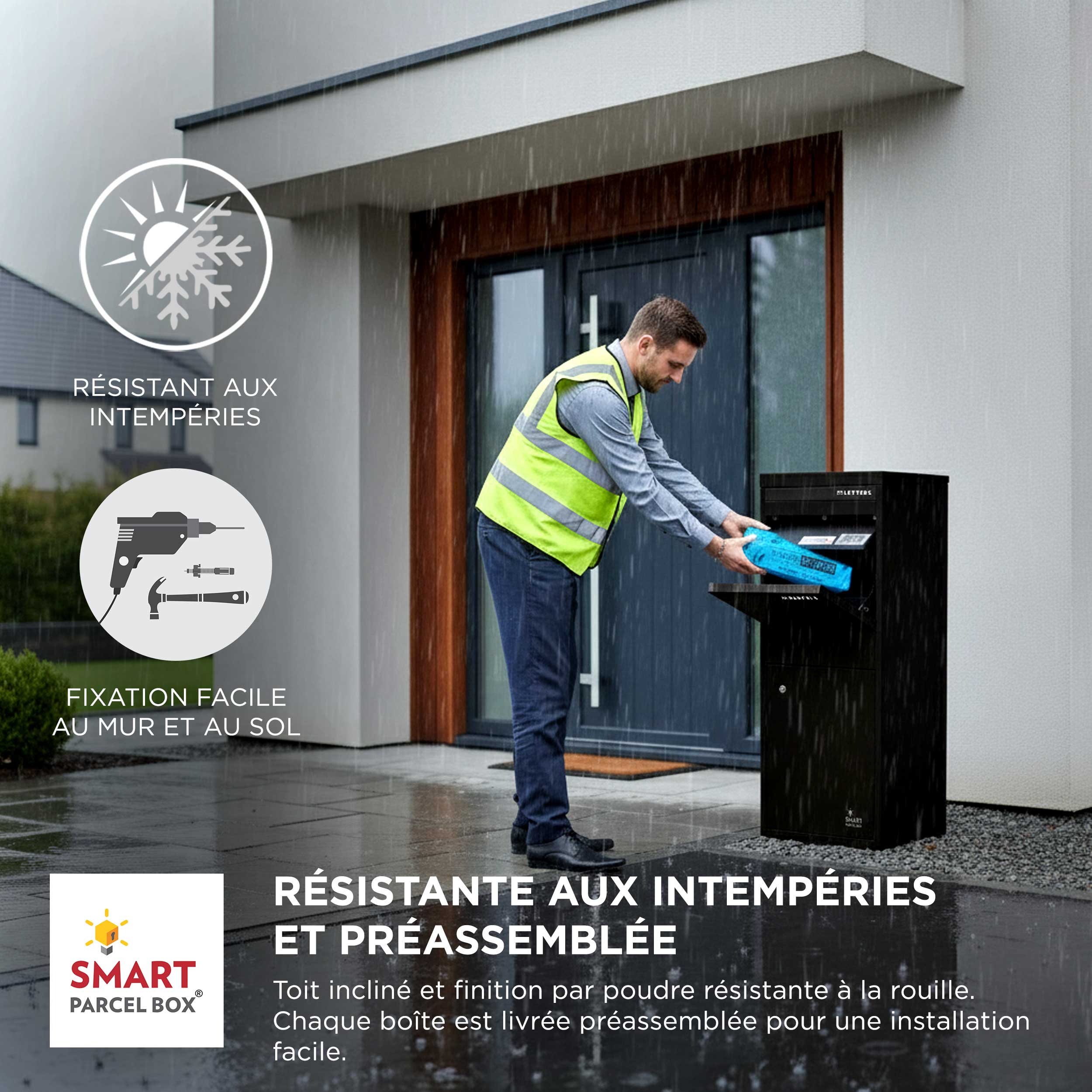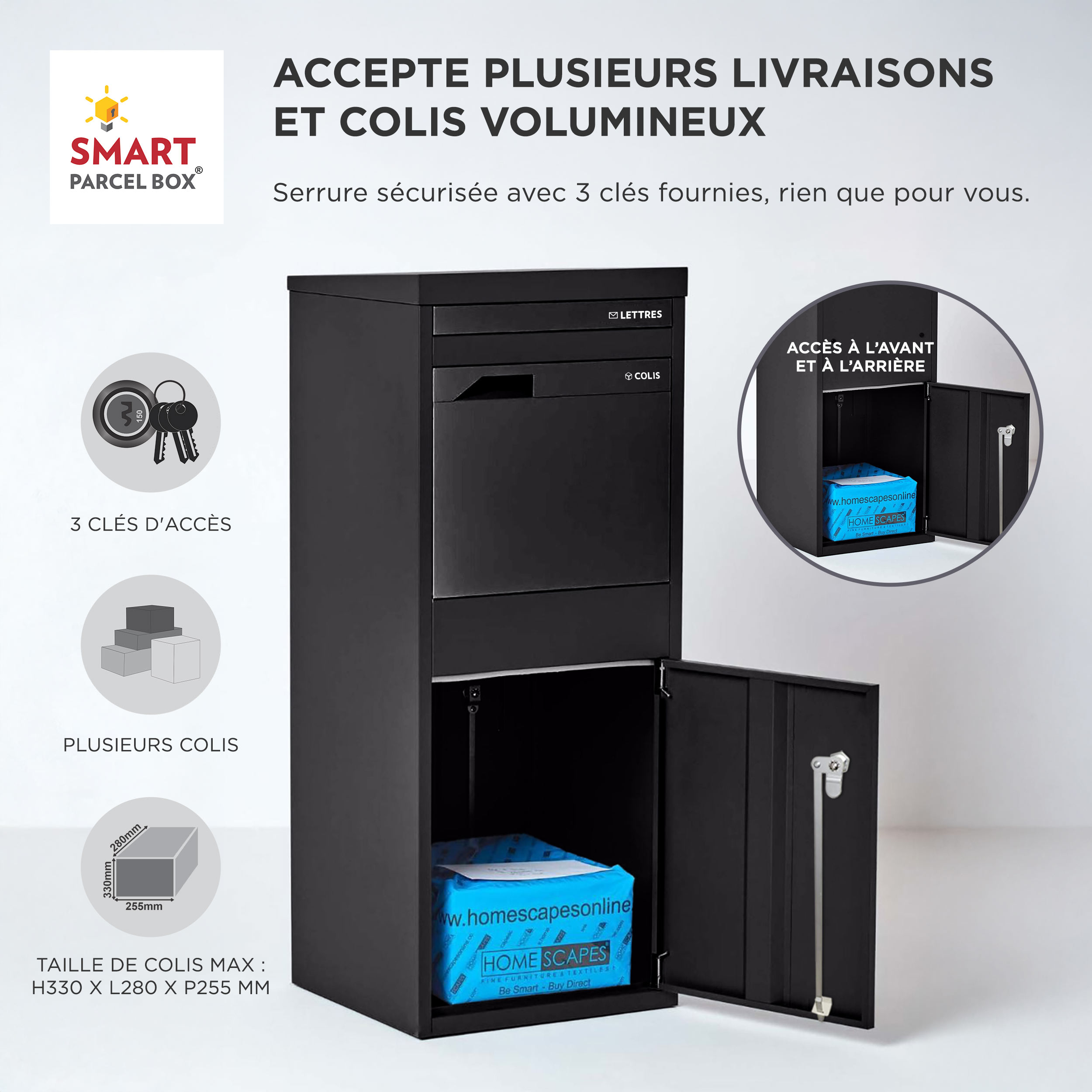 | Libellé | Boîte aux lettres 2 portes Boîte à colis extérieure Large Noir SMART PARCEL BOX™ |