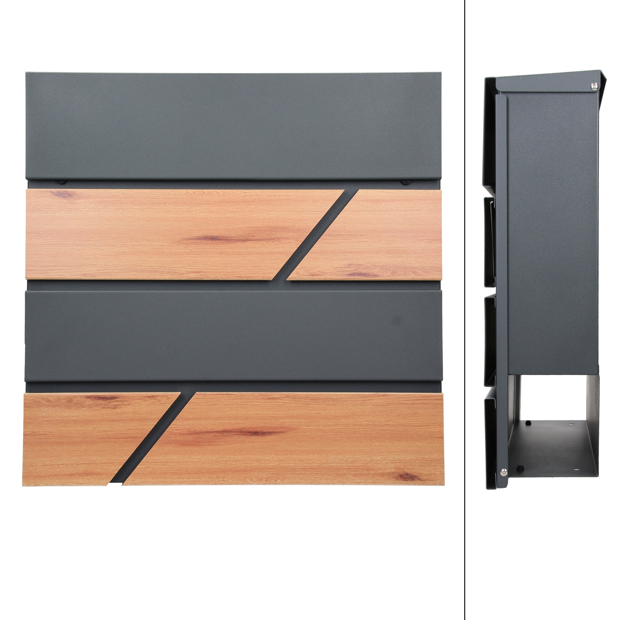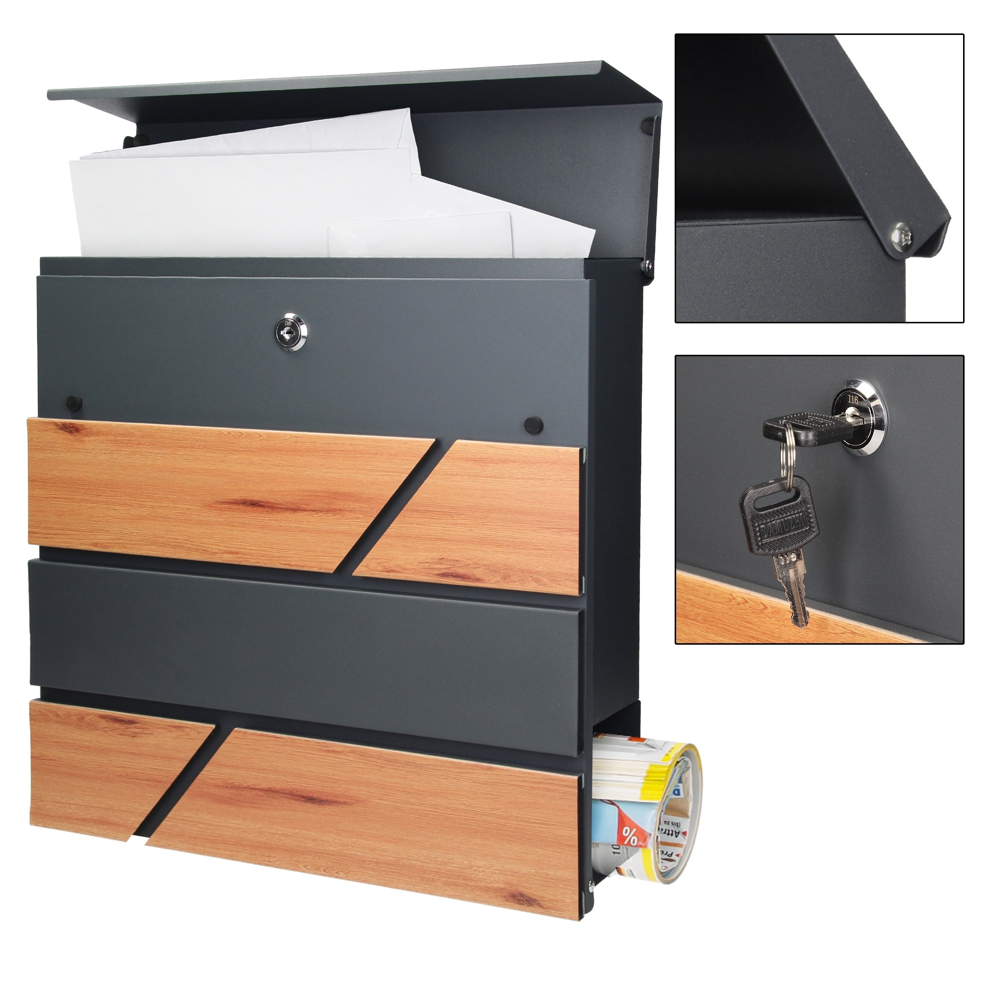 | Libellé | Boîte aux lettres moderne en acier anthracite imitation bois murale avec 2 clés |