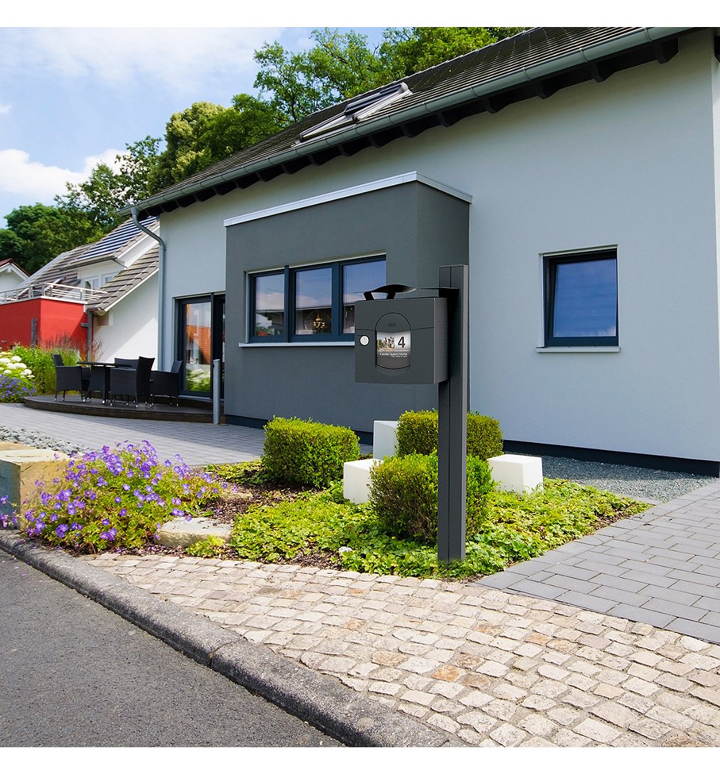 Boite aux lettres éco-conçue et originale. Permet de recevoir jusqu’à 45% des colis du e-commerce. Garantie anti-corrosion de 15 ans. Boitier avec gouttière hydrofuge. Porte avant galbée, avec large volet recouvrant et grand porte-nom personnalisable sur le site de RENZ dès réception de votre boite. Plancher ergonomique pour un retrait facile du courrier. Fond pré percé, facilitant la mise en place des accessoires de pose spécialement adaptés. Boîte aux lettres normalisé 2 portes Renz Soléa aux lignes courbes. Boitier avec gouttière hydrofuge. Porte avant galbée et recouvrante avec large volet recouvrant et grand porte-nom personnalisable sur le site de RENZ. Plancher ergonomique pour un retrait facile du courrier. Serrure agréée La Poste. Fond pré percé, facilitant la mise en place des accessoires de pose spécialement adaptés. Herse antivol renforcée. Peinture poudre polyester sans plomb. Garantie anti-corrosion de 15 ans. Anti-vandale grade 3, résistant jusqu'à 60kg d'arrachement. Certifiée loi handicap. Dimensions : 285x285x415mm. Boite aux lettres éco-conçue, tout a été étudié pour diminuer au maximum son empreinte écologique.