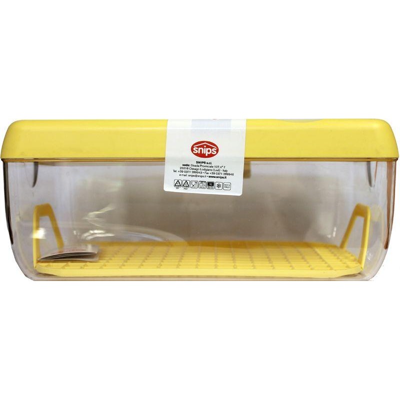 Matière : Plastique PST/PP, boite coloris transparent et couvercle coloris jaune