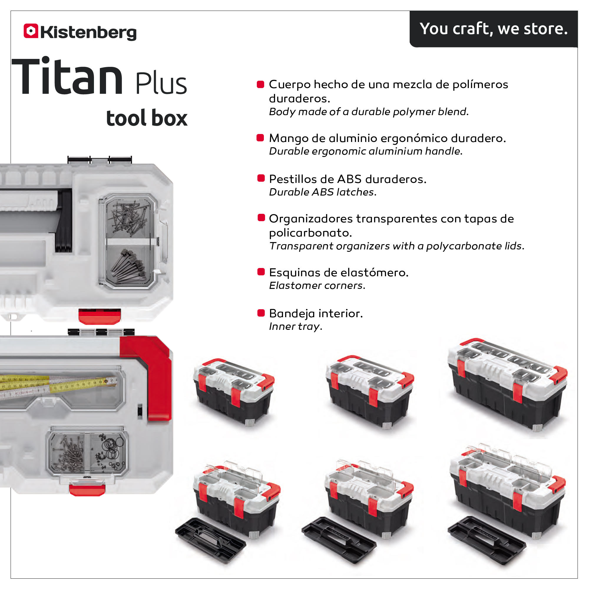Boîte à outils multifonction Kistenberg Cette boîte multifonction est fabriquée à partir d'un mélange de polymères durable. Poignée ergonomique. Attaches ABS durables. Organisateurs transparents avec couvercles en polycarbonate. Coins en élastomère et plateau intérieur. Dimensions de l'article L x l x H 28.6 x 55.4 x 27.6 centimètres