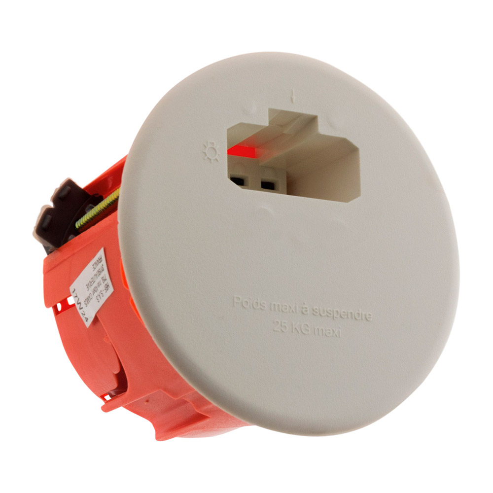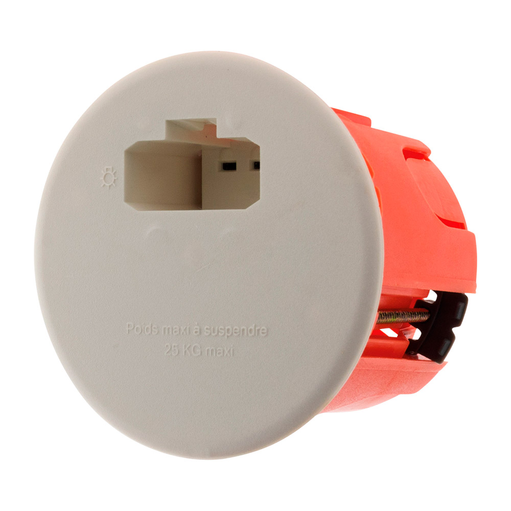 Caractéristiques de la boîte DCL point de centre à encastrer mur creux ou placo Ø65mm - Zenitech :