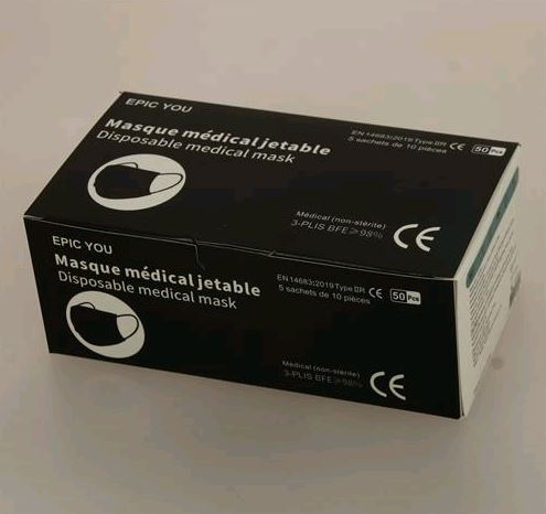 | Libellé | Boîte de 50 masques respiratoires jetables 3 plis Type II R BFE > 98 % noir - MASQUES10 |
