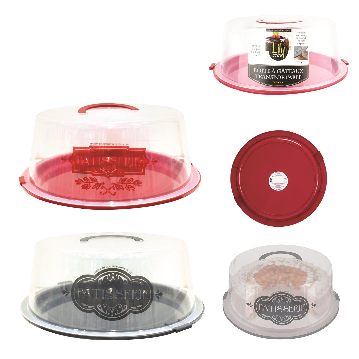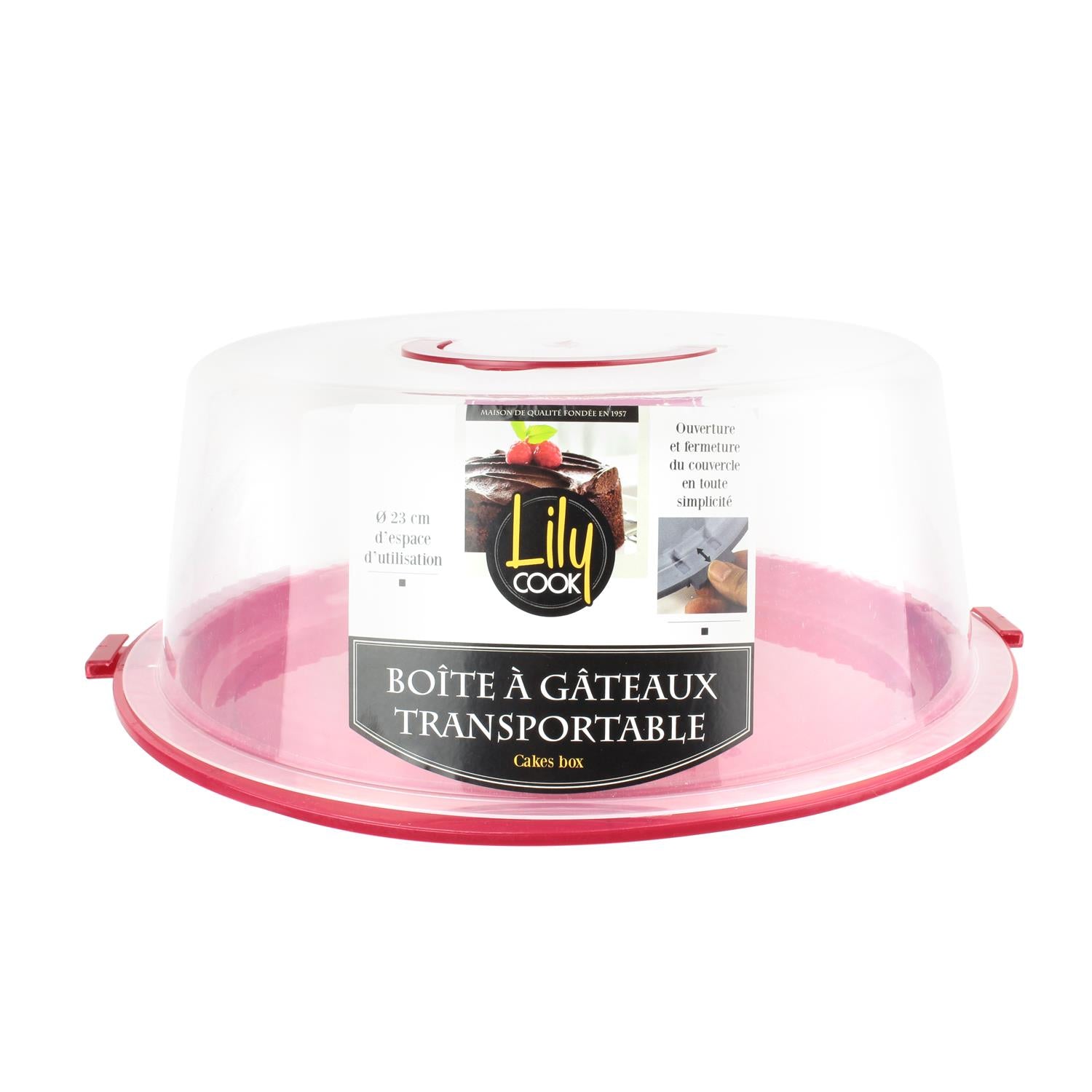- Cette boîte à gâteaux transportable munie de sa cloche est ingénieuse et pratique à la fois! Le modèle est joliment illustré, il présente un système d'ouverture et de fermeture facile d'emploi ! Diamètre d'espace d'utilisation : 23 cm..