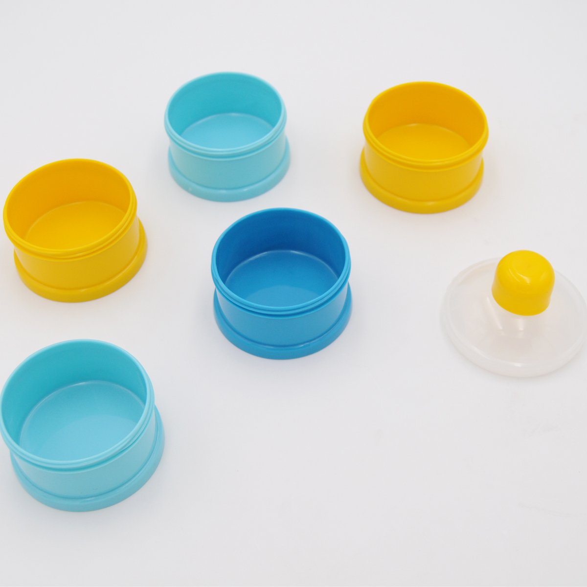 Empilable et interchangeable, chaque compartiment contient jusqu'à 9 doses de lait en poudre.