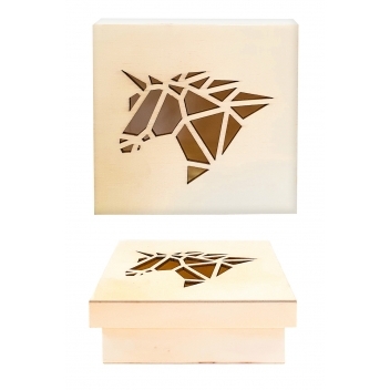Boîte en bois avec découpe licorne origami 11 cm - MegaCrea DIY ref 7869