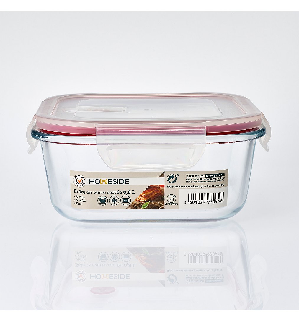 | Libellé | Boîte en verre 0,8L - Sélection d'Experts - Homeside - à clips - à valve |