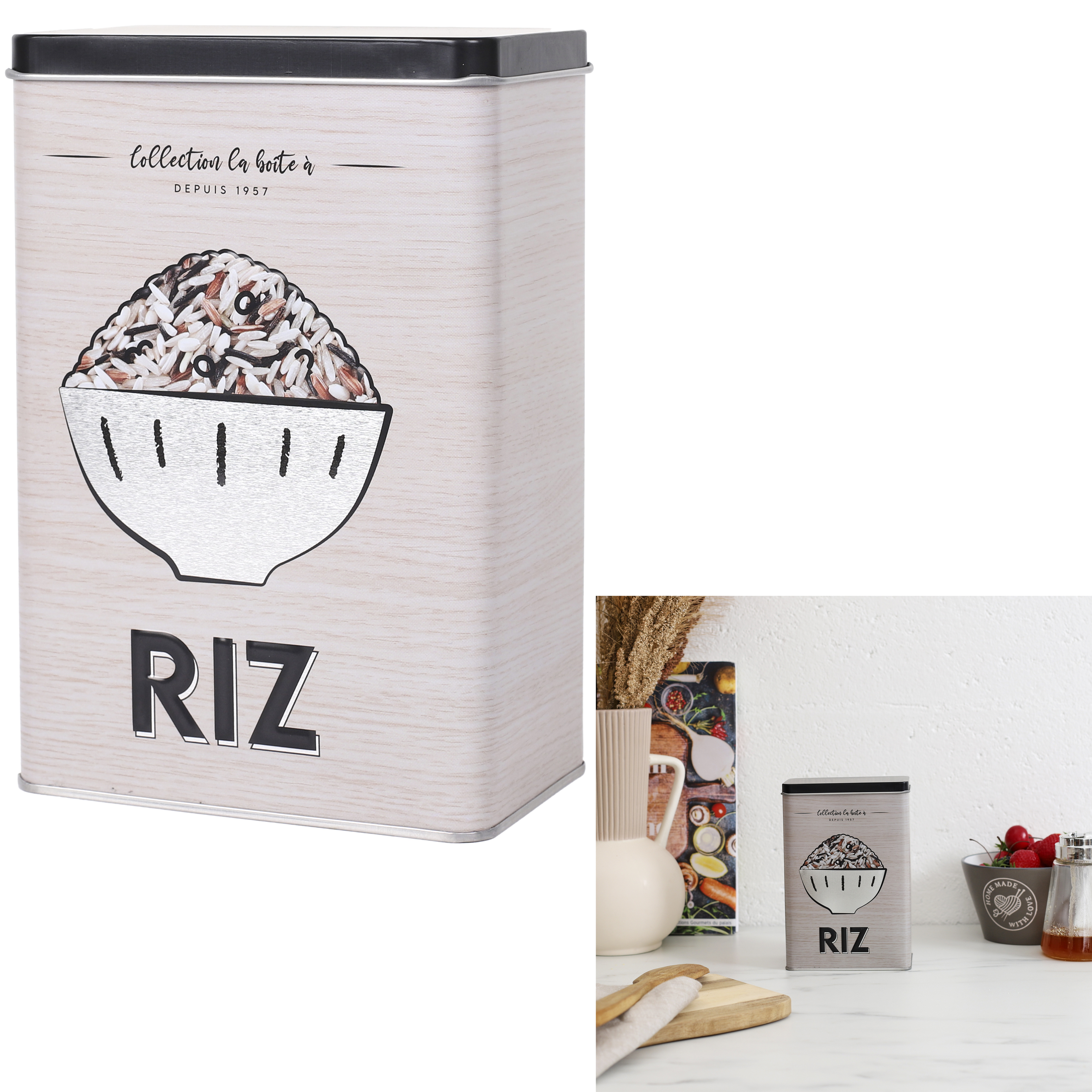 Boîte Métal Ingrédient Embosse Riz 12X8X18Cm