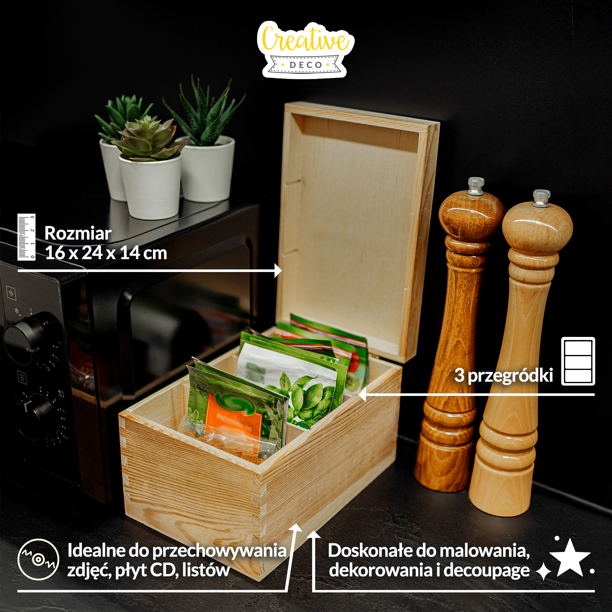 TAILLE IDÉALE – Avec une taille extérieure de 16 x 24 x 14 cm, c'est une boîte de rangement parfaite pour ranger et organiser tous les objets de valeur et petits, des livres petits, des cartes, des lettres et bien d’autres. Parfait pour un cadeau d'anniversaire, de Noël, de Pâques ou de baptême. PARFAIT POUR TOUS LES ÂGES – Les bords arrondis et non tranchants rendent la boîte de rangement avec couvercle sans danger pour les enfants, les adolescents et les adultes. Parfait pour le découpage, l'artisanat, le bricolage, le vernissage, la pyrogravure et bien d'autres projets ! GRANDE QUALITÉ – Matériau léger avec une épaisseur de paroi de 1 cm et une base en contreplaqué de 3 mm. L'odeur de bois qui se dégage de l'emballage vous donne l'impression d'utiliser du bois certifié provenant des forêts durables des Carpates. ORGANISATION DE L'ESPACE – Vous souhaitez un produit qui réponde à vos besoins et exigences ? Vous pouvez modifier cette grande boîte de rangement comme vous le souhaitez en fabriquant vos propres séparateurs ou en la peignant et en la décorant. Vous pouvez maintenant profiter de votre espace propre et organisé grâce à notre boîte à souvenirs !
