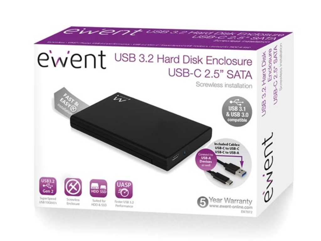 | Libellé | Boîtier de disque dur/SSD SATA USB-C 3.2 Gen2 sans vis de 2,5 pouces - Ewent EW7072 |