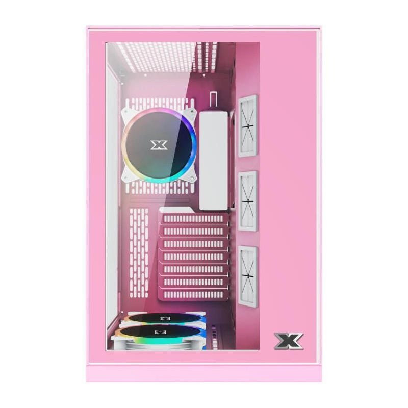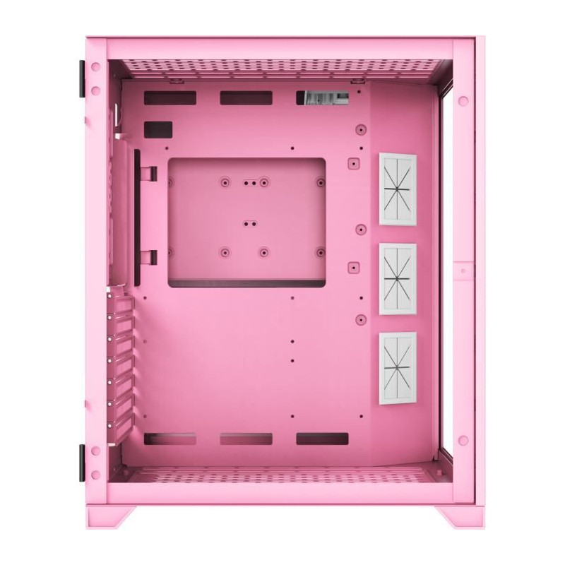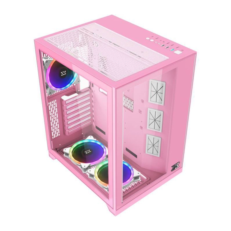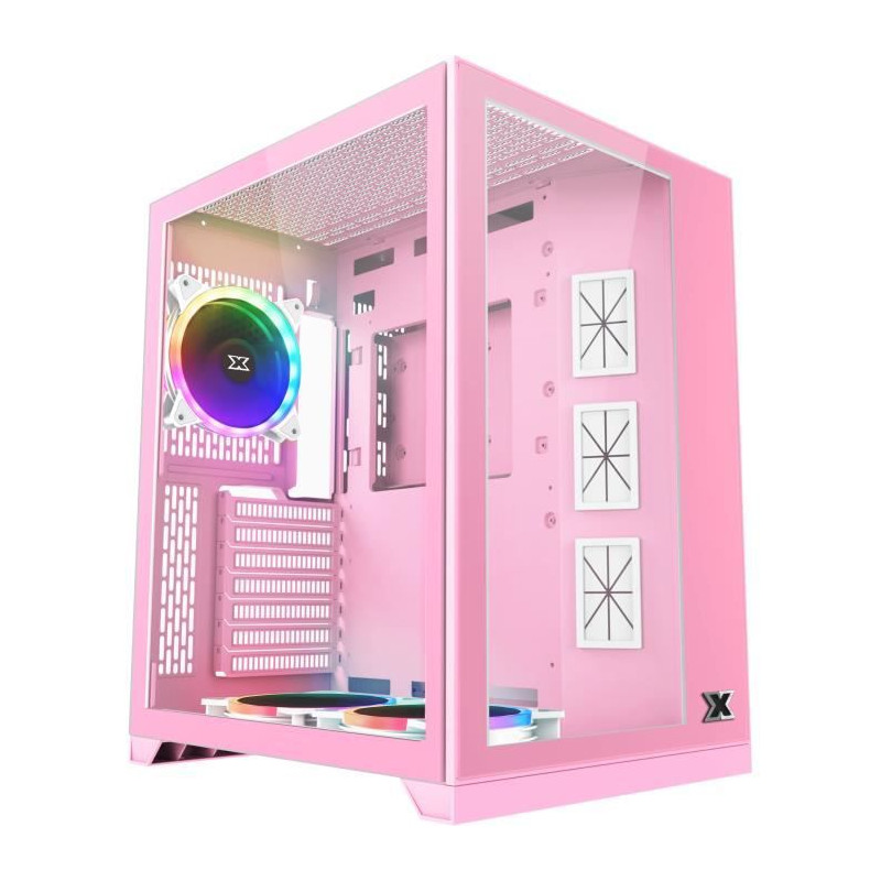 Boitier PC Moyen tour - Pour carte mere ATX/Micro ATX/Mini-ITX - inclus 3x120mm ARGB - USB3.0-2.0/HD Audio - 2 x Verre trempé (gauche + façade) - Couleur Rose/Blanc