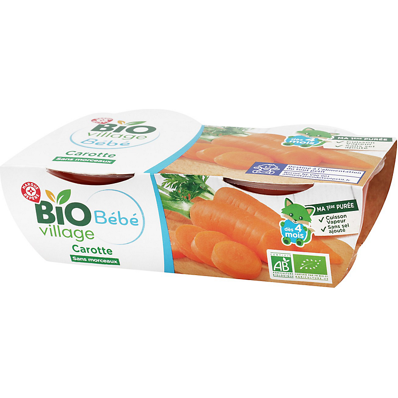 Aliment pour bébés : carotte, stérilisé - Produit issu de l'agriculture biologique BIO VILLAGE