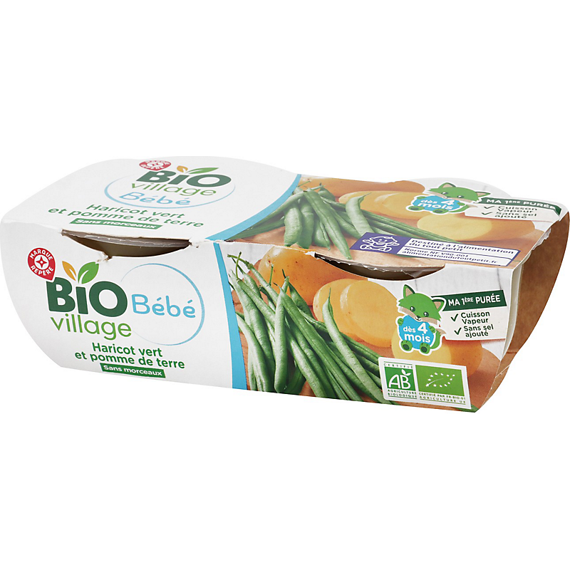 Aliment pour bébés : haricot vert et pomme de terre, stérilisé - Produit issu de l'agriculture biologique BIO VILLAGE