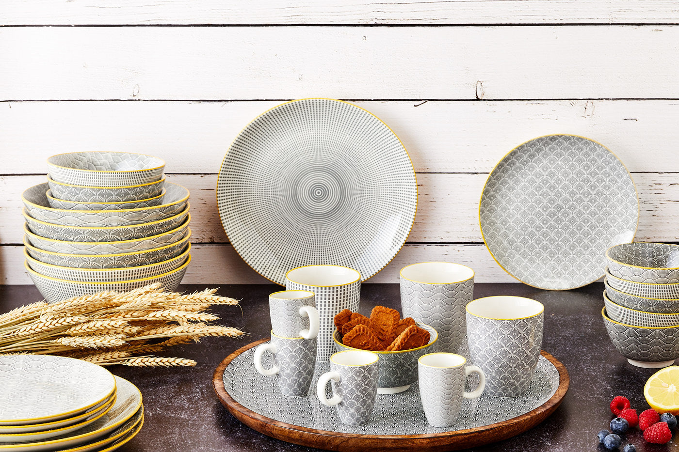 La collection PATTERN dans sa déclinaison Eclipse sollicite votre créativité et permet un mix and match facile des couleurs lors du dressage de la talbe. Les motifs et les couleurs tournent d'une pièce à l'autre et nous invitent à l'échange et au partage.