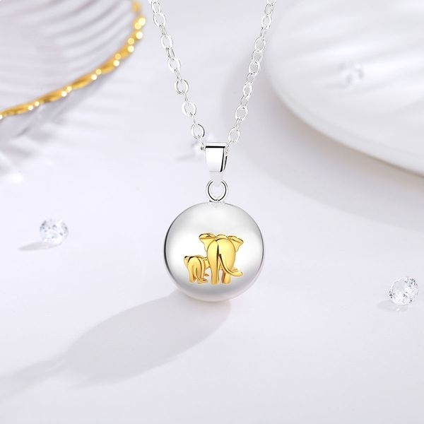 Ce bola de grossesse est parfait pour donner du peps au look d'une future mère. Il présente un pendentif magnifiquement décoré par des éléphants faisant référence à la maman et sa maman. A offrir pour un baby shower.* Longueur collier : 114 cm * Matière pendentif : Cuivre, plaqué argent Fonctions : carillon, lien prénatal, détendre maman, apaiser bébé après la naissance, bijoux design Contenu : 1 boule, 1 chaine, 1 boite