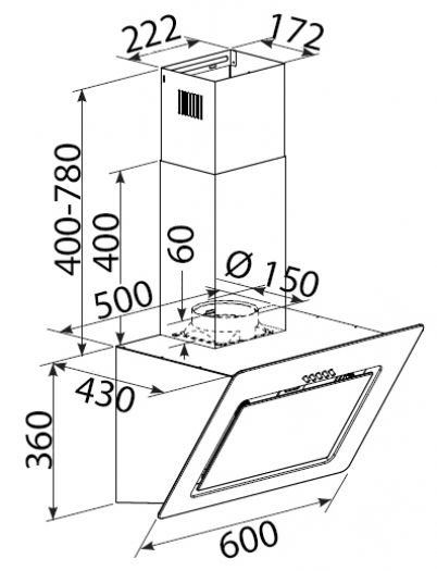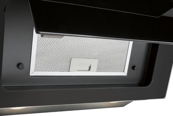 Bomann DU 771.1 G. Puissance d'extraction maximum: 603,1 m³/h, Type d'extraction: Conduit / Recirculation, Niveau sonore: 63 dB. Couleur du produit: Noir, Matériau du boîtier/corps: Verre, Type de commande: Tactile. Type de filtre à graisse: Aluminium, Nombre de filtres: 1 pièce(s), Nombre de couches de filtrage: 5 pièce(s). Consommation annuelle d'énergie: 43 kWh, Charge connectée: 233 W, Tension d'entrée AC: 220 - 240 V. Largeur: 222 mm, Profondeur: 172 mm, Hauteur (min): 40 cm