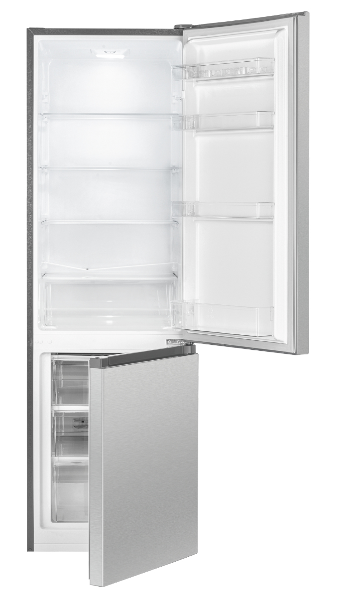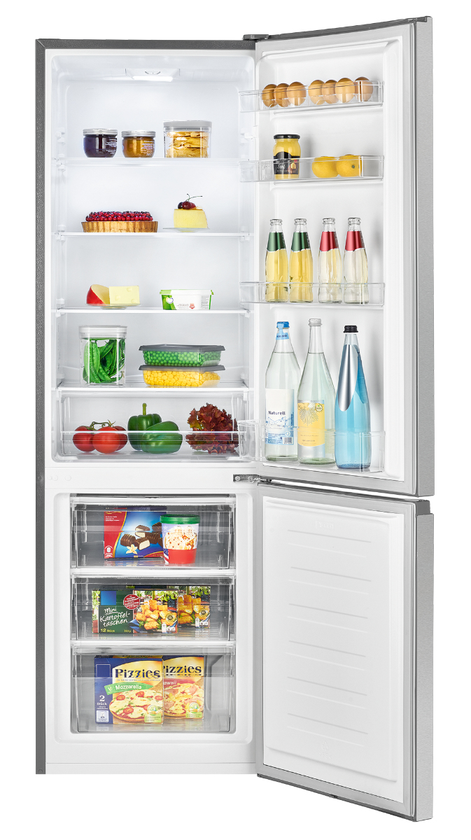 Bomann KG 184.1. Capacité nette totale: 269 L. Emplacement charnière de porte: Droite. Classe climatique: N-ST, Niveau sonore: 39 dB. Capacité nette du réfrigérateur: 198 L, Lumière intérieure du réfrigérateur, Nombre de clayettes/bacs du réfrigérateur: 4, Nombre de tiroirs à légumes: 1. Capacité net du congélateur: 71 L, Capacité de congélation: 3,2 kg/24h. Classe d'efficacité énergétique: D, Consommation annuelle d'énergie: 168 kWh. Couleur du produit: Acier inoxydable