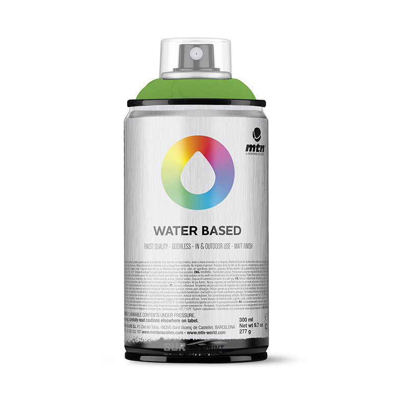 • La MTN Water Based 300 est la première bombe de peinture destinées aux artistes, dont les solvants à base de pétrole sont remplacés par de l'eau. La formule combine des résines hydrosolubles à très faible odeur, avec des pigments de très haute qualité. Le gaz propulseur utilisé est l'éther méthylique, également utilisé dans la cosmétique.
