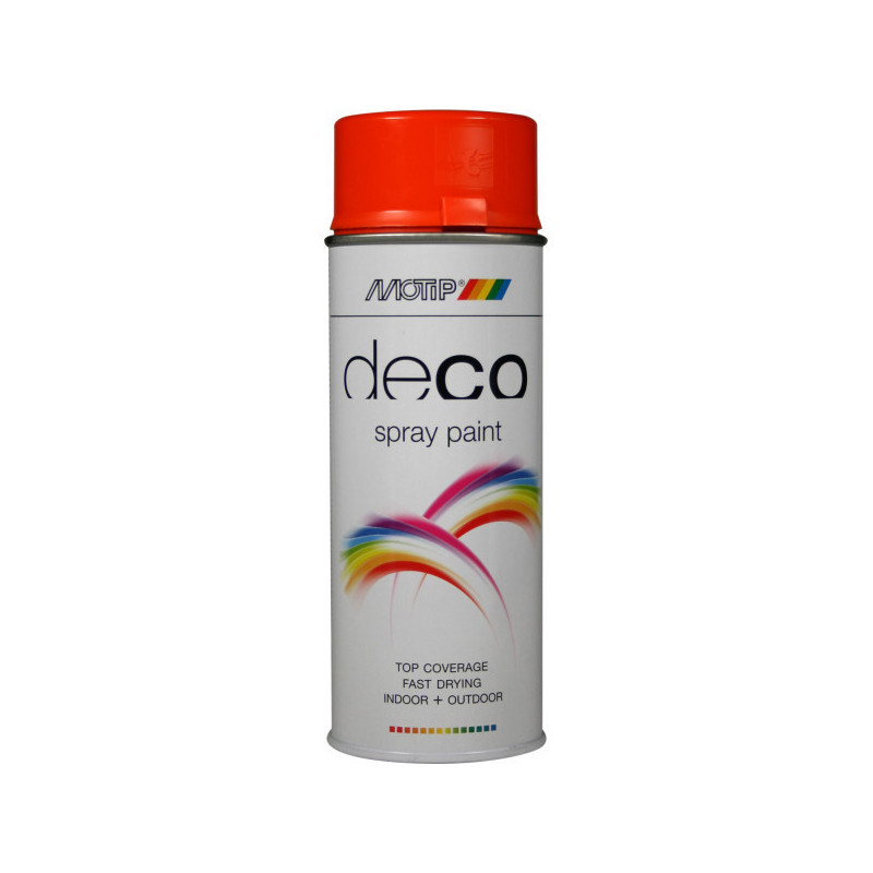 Bombe de peinture aérosol 400 ml. Gamme Deco Paint de Motip. Couleur Orange pur, RAL 2004, finition brillante.