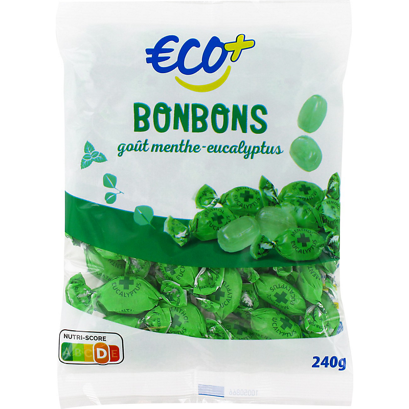 Bonbons durs menthe-eucalyptus, aromatisés ECO +