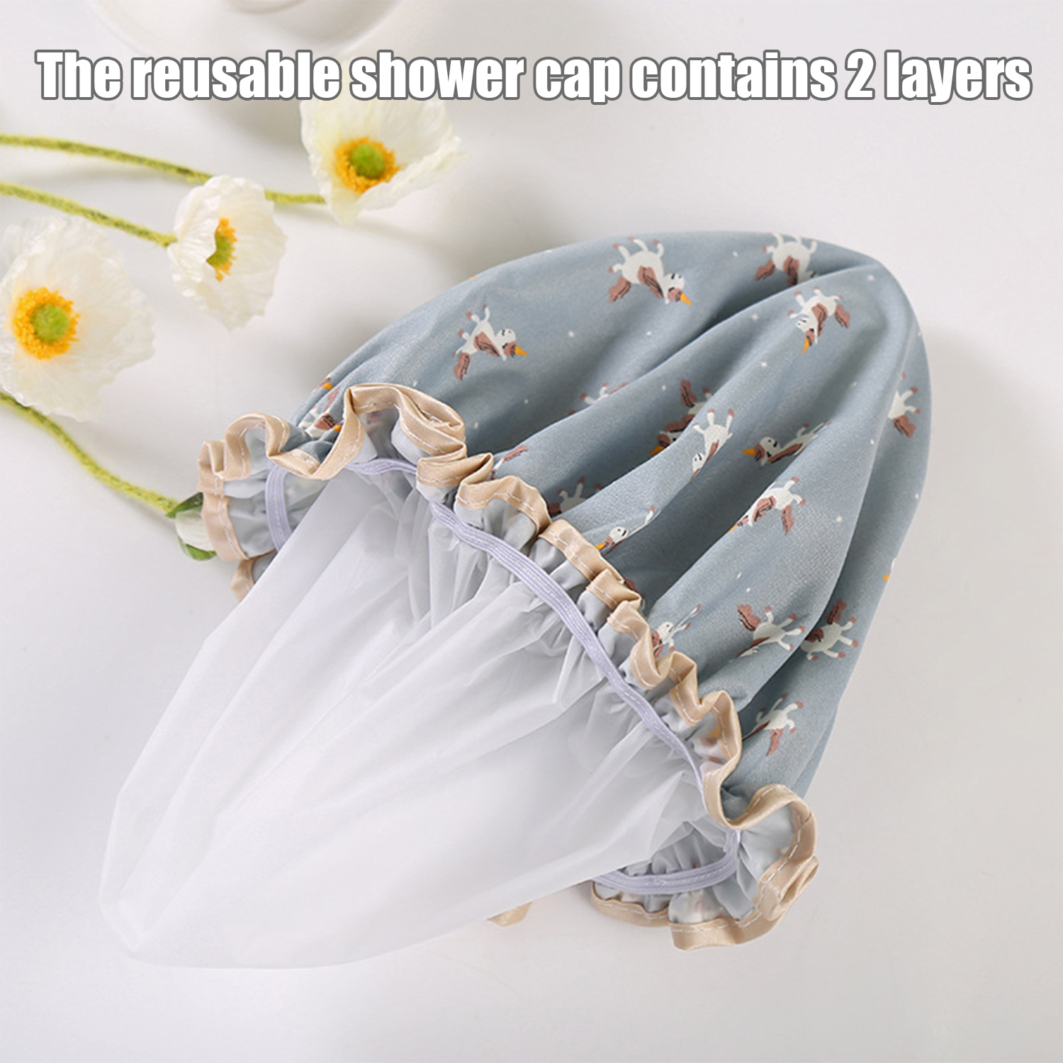 Le bonnet de bain est doté de doubles couches et est suffisamment grand pour couvrir la totalité des cheveux. Il évite que les cheveux ne soient mouillés lors du bain et de la douche. Le bonnet de douche au joli motif floral est doté d'un élastique doux tout autour et est facile à mettre et à enlever.