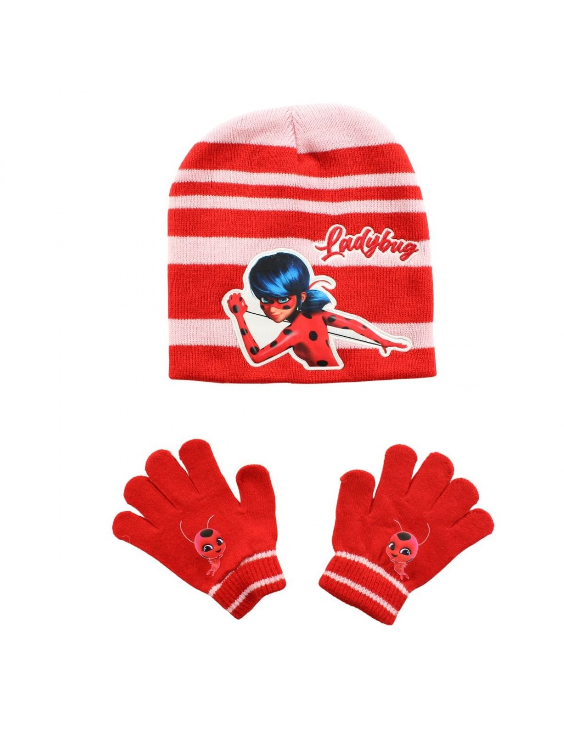 Bonnet gant Miraculous, Rouge. Fabrication : 100% ACRYLIQUE. SAISON : HIVER