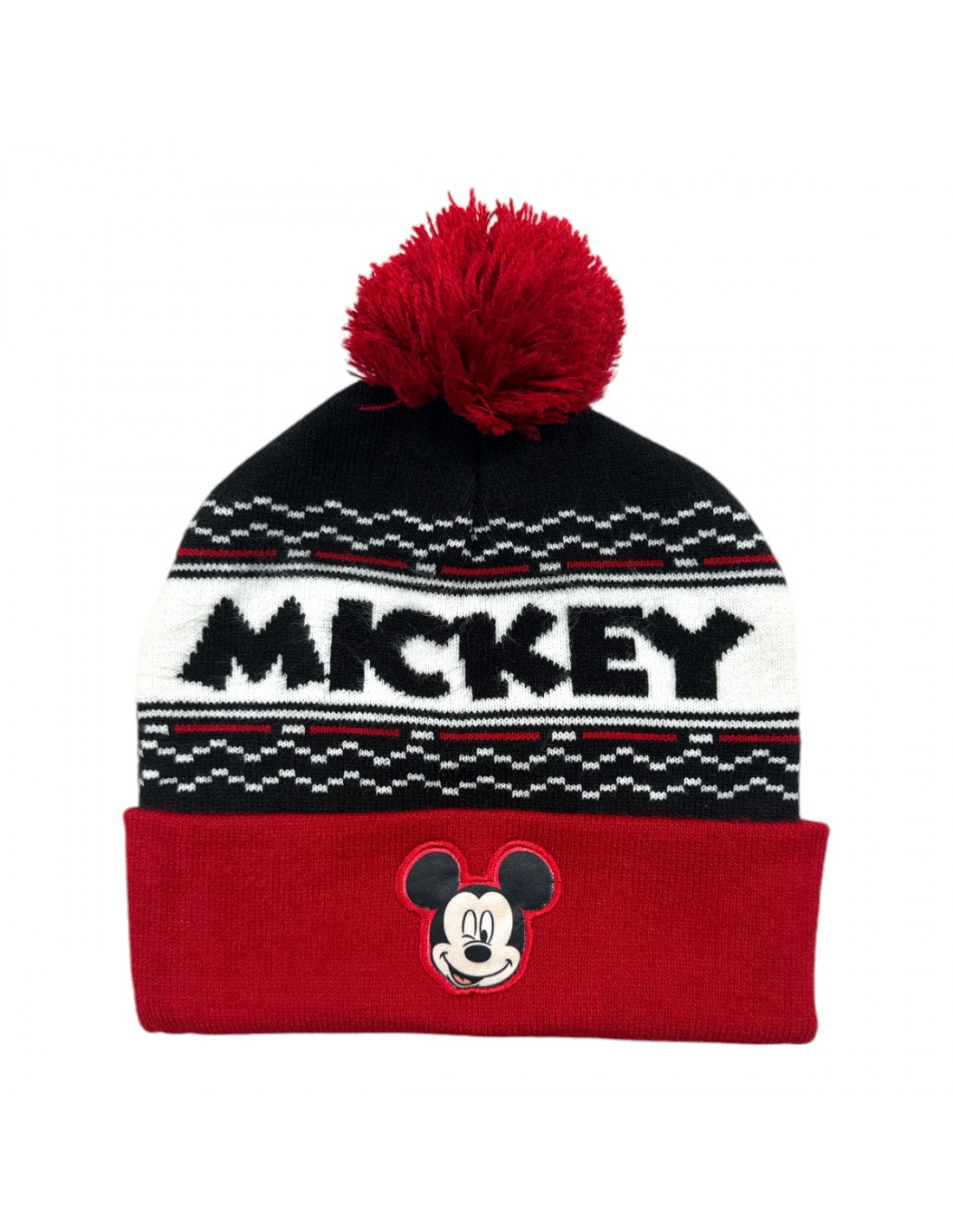 Bonnet Mickey Rouge, Noir et Blanc, 100% acrylique