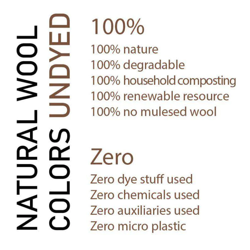 - laine 100% naturelle, non teinte et non traitée (sans additifs)