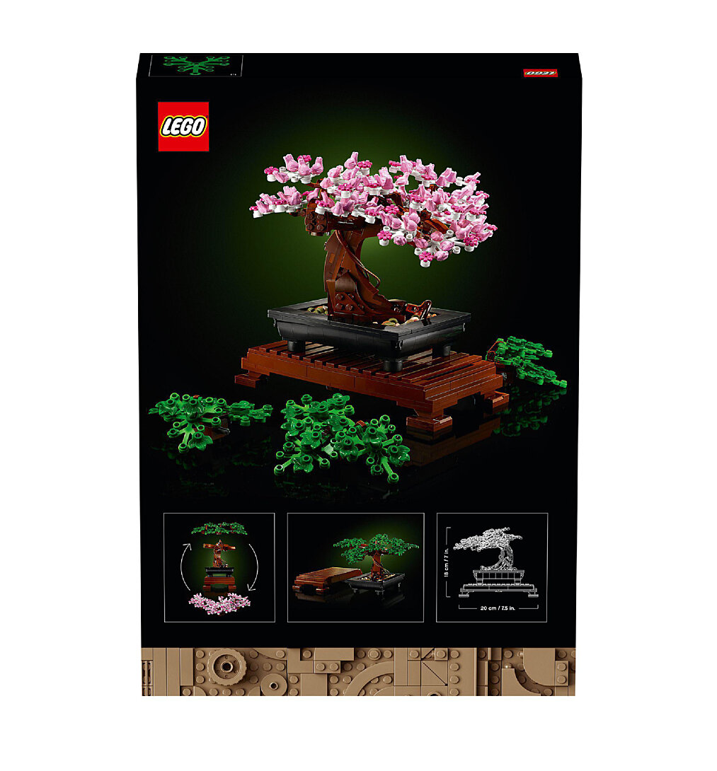 | Plus produit | La construction du modèle Bonsaï LEGO® constitue un projet artistique gratifiant, avec la possibilité de remplacer le feuillage vert par des fleurs de cerisier rose tendre. |