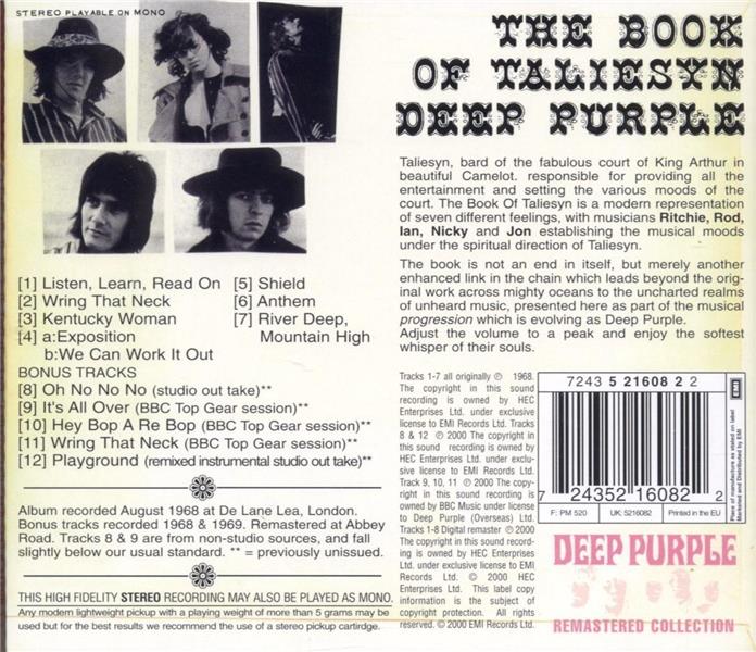 | Liste des pistes | 1.01 . listen, learn, read on - Deep Purple1.02 . wring that neck - Deep Purple1.03 . kentucky woman - Deep Purple1.04 . exposition / we can work it out - Deep Purple1.05 . shield - Deep Purple1.06 . anthem - Deep Purple1.07 . river deep, mountain high - Deep Purple1.08 . oh no no no - Deep Purple1.09 . it's all over - Deep Purple1.10 . hey bop a re bop - Deep Purple1.11 . wring that neck - Deep Purple1.12 . playground (remixed instrumental studio outtake) - Deep Purple |