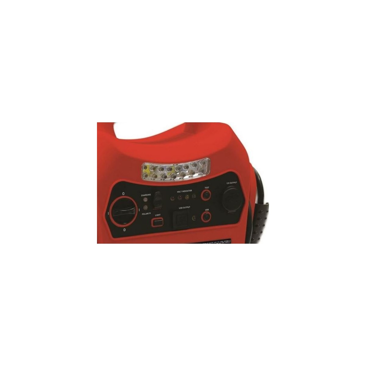 Ce booster démarreur d'urgence dispose d'une batterie de 10 Ah qui se recharge via le réseau 230 V ou via l'allume-cigare du véhicule.