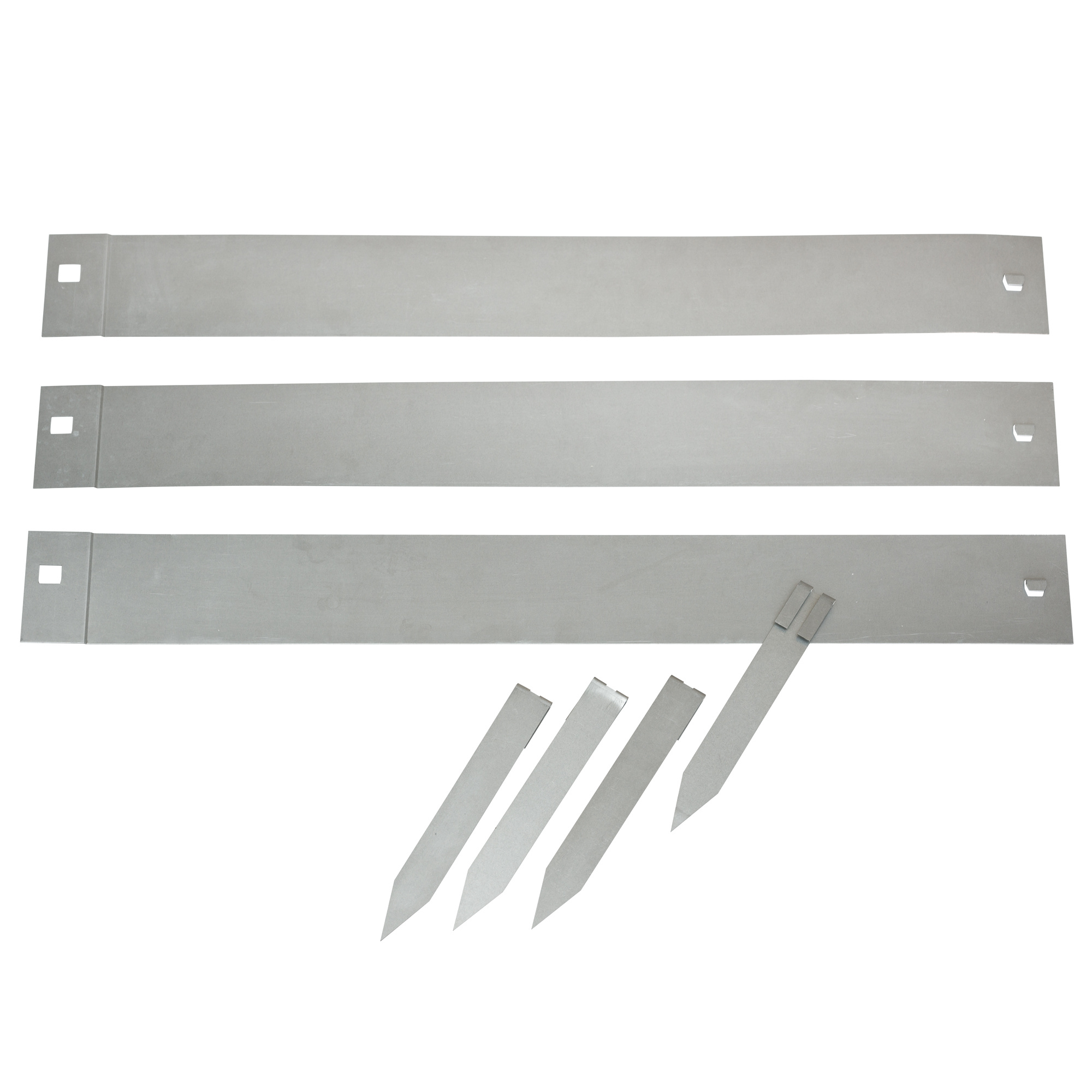 Bordure de jardin en acier galvanisé. Elle se compose de 3 lattes raboutables, et de 4 ancres pour la fixer au sol. Convient pour des réalisations droites, courbes et contours d'arbre.