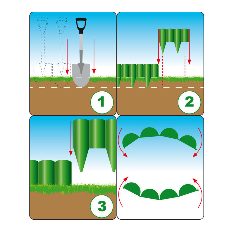 Elle est idéale pour faire des séparations entre le gazon et des parterres de fleurs ou pour retenir des écorces / pierres.