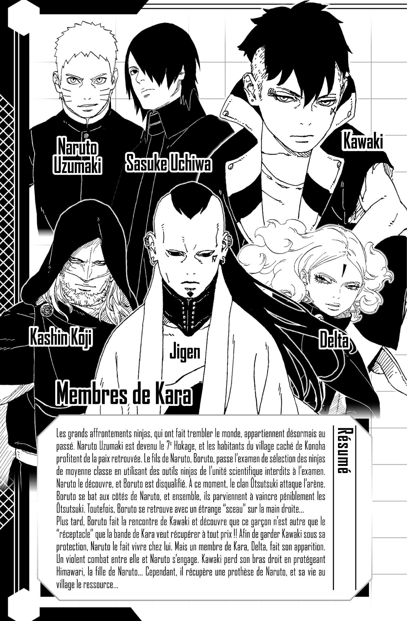Kawaki commence à s'habituer à la vie du village de Konoha. Boruto a un mauvais pressentiment… Au même moment, le kâma de Kawaki se transforme, et Jigen en sort !! L’affrontement entre Naruto et Jigen commence…