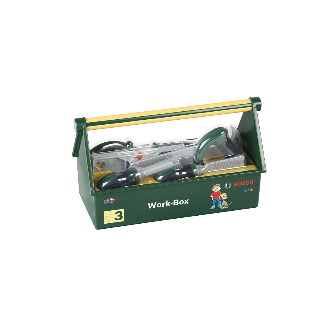Caisse à outils Bosch avec les 7 outils indispensables: clé plate, lime, marteau, niveau à bulle, pince, scie et tournevis. Équipé de la sorte, tu peux désormais imiter les grands et devenir un pro du bricolage ! Fabriquée en Allemagne