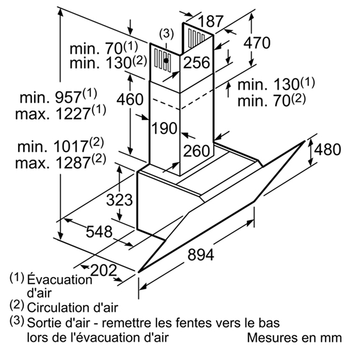 | Libellé | Bosch DWK98PR60 hotte Montée au mur Noir, Acier inoxydable 840 m³/h |