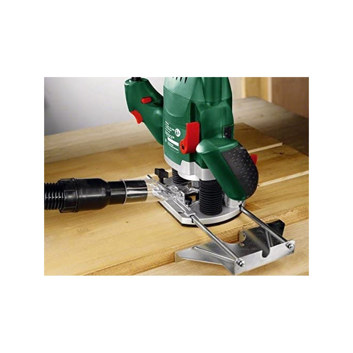 La défonceuse POF 1200 AE Bosch est particulièrement polyvalente. Avec elle, il est possible de creuser des rainures pour assembler des pièces en bois, de réaliser des moulures sur des champs ou encore de créer des formes spéciales sur des pièces, le tout avec un maximum de précision et de confort, en toutes circonstances. Le puissant moteur de 1 200 W autorise les travaux les plus difficiles dans tous les types de bois et assure une progression de travail régulière. Grâce à la régulation électronique du régime Bosch, avec molette et gâchette sensible à la pression, il est possible d’usiner les différents matériaux avec une extrême précision. Quant au blocage de broche intégré, il se traduit par un changement de fraise simple et rapide. Le système SDS Bosch, enfin, permet un montage simple de la bague de copiage, sans outil supplémentaire. Bref, la POF 1200 AE Bosch fait référence en matière de puissance, de confort d’utilisation et d’équipement.