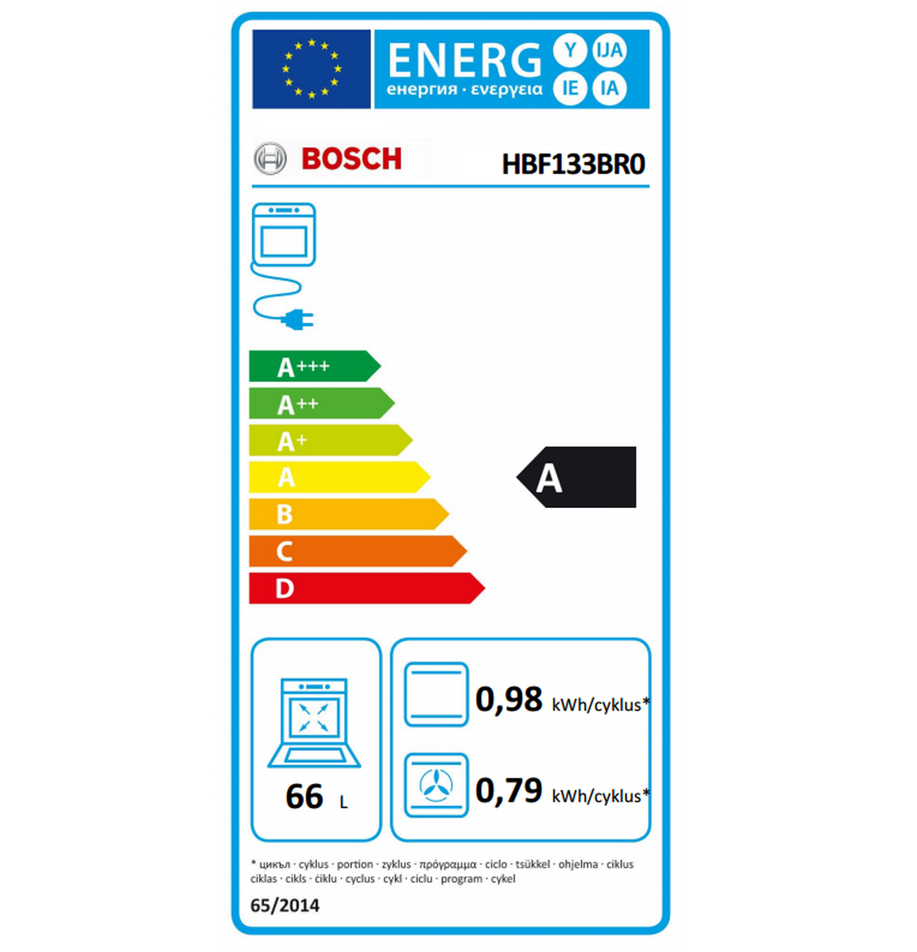 | Libellé | Bosch Serie 2 HBF133BR0 four 66 L Noir, Acier inoxydable |