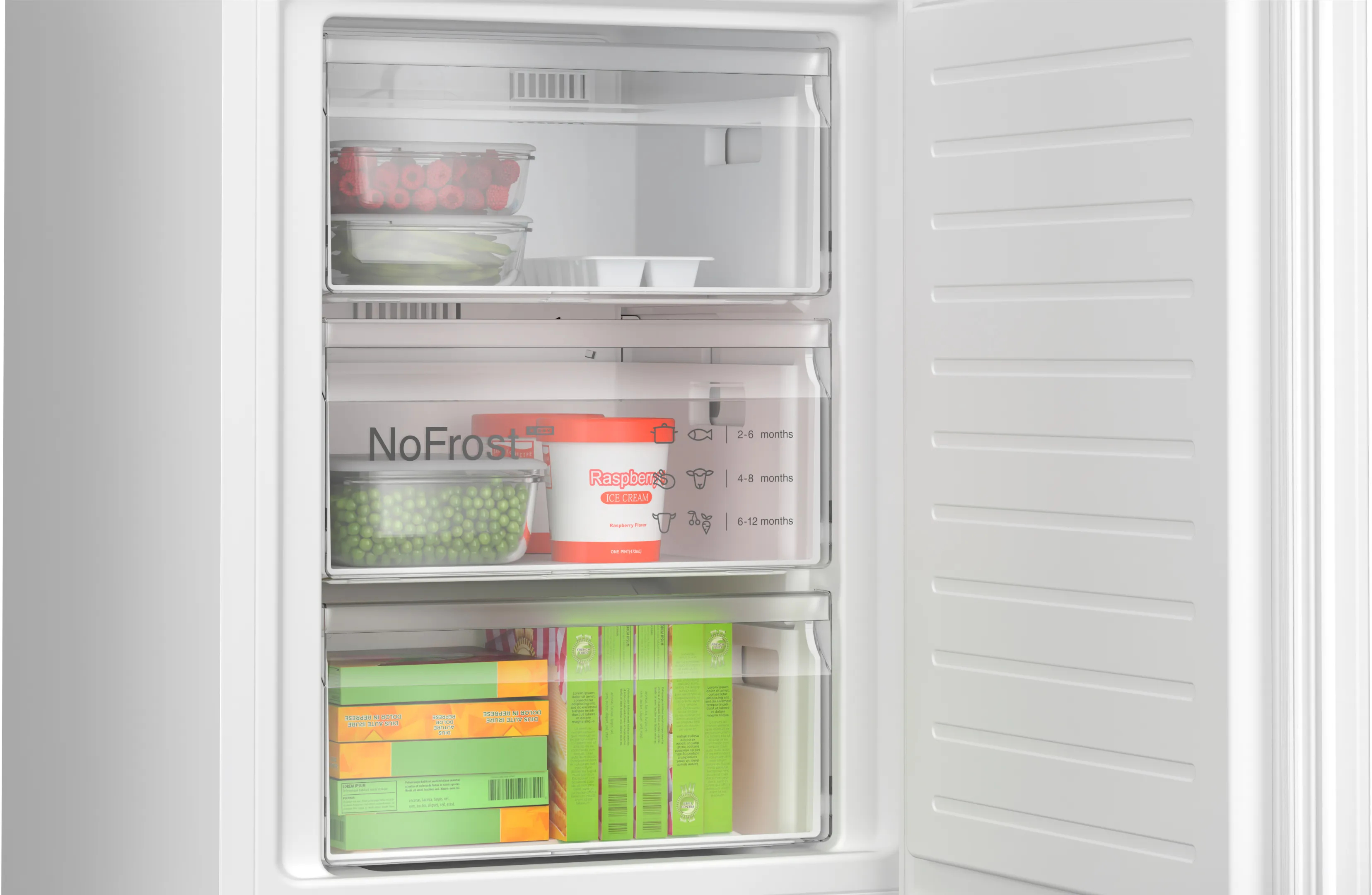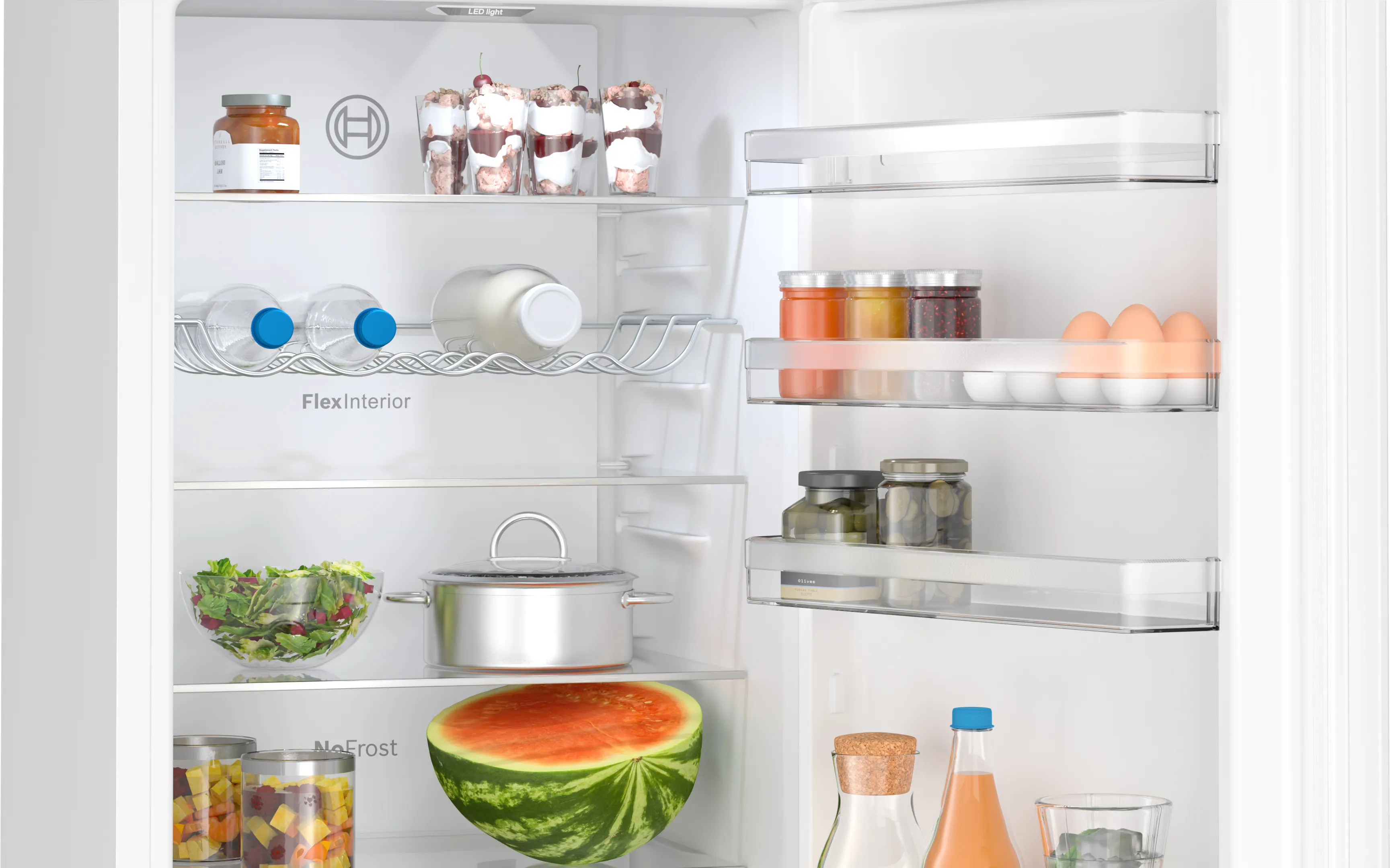 Ultra spacieux, les deux tiroirs VitaFresh XXL <0 °C> offrent un environnement de stockage idéal pour vos produits frais.Extra-large, le tiroir VitaFresh XXL accueille tous vos fruits et légumes et prolonge leur fraîcheur en ajustant l'humidité. Quant au tiroir VitaFresh <0 °C>, il maintient une température aux alentours de 0 degré, idéale pour la conservation des viandes et poissons..