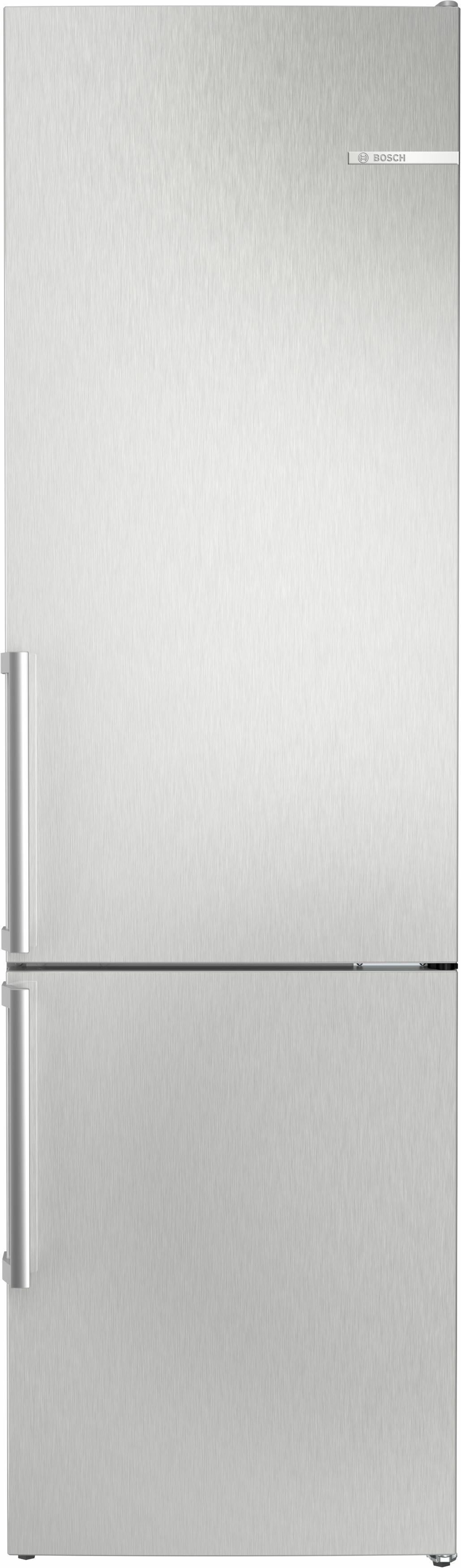 Bosch Serie 4 KGN39VLCT. Capacité nette totale: 363 L. Emplacement charnière de porte: Droite. Classe climatique: SN-T, Niveau sonore: 35 dB. Capacité nette du réfrigérateur: 260 L, No Frost (réfrigérateur), Système à plusieurs flux d'air (réfrigérateur), Lumière intérieure du réfrigérateur. Capacité net du congélateur: 103 L, Capacité de congélation: 10 kg/24h, No Frost (freezer). Nouvelle zone compartiment. Classe d'efficacité énergétique: C, Consommation annuelle d'énergie: 162 kWh. Couleur du produit: Acier inoxydable