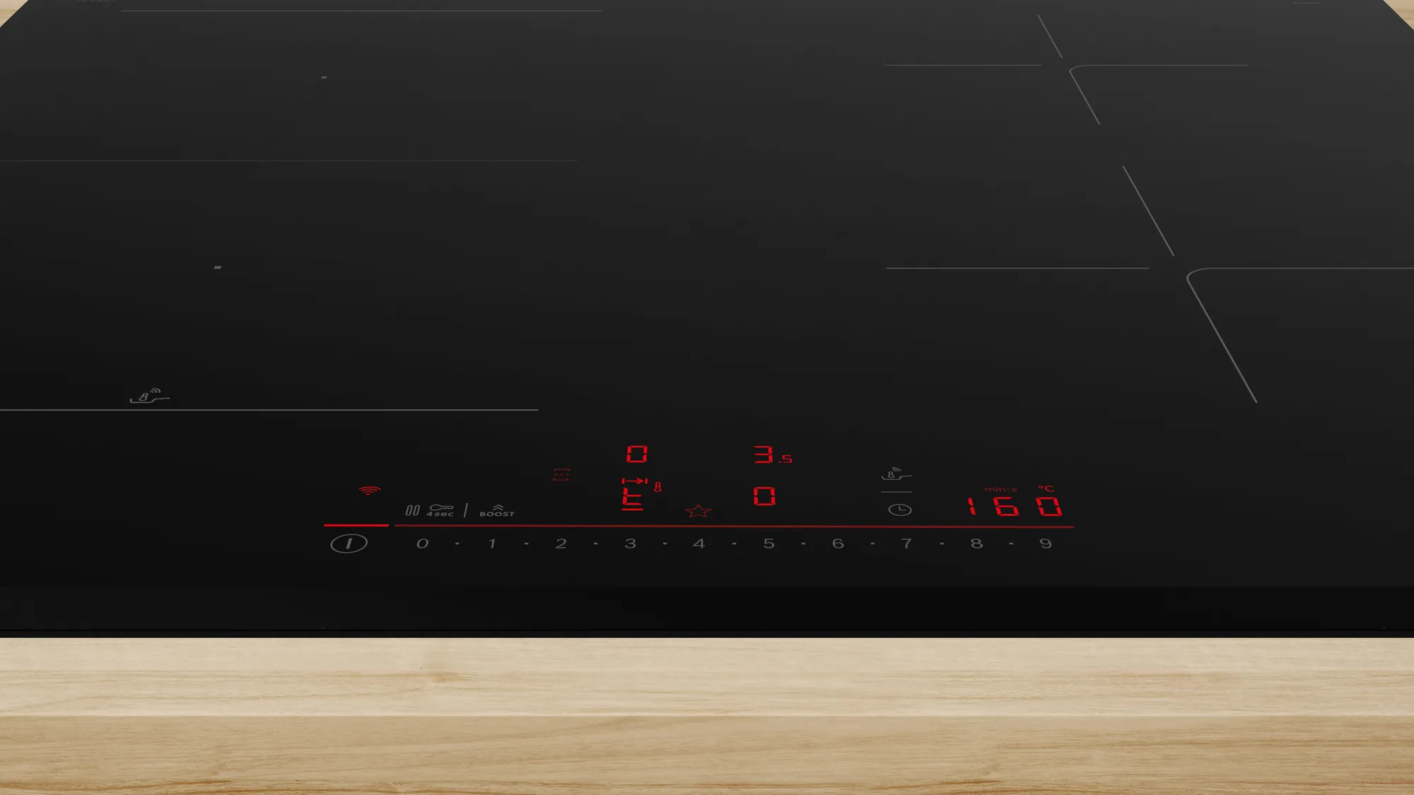 Contrôlez les fonctions de votre hotte via votre table de cuisson. La plaque de cuisson électrique et la hotte associée sont équipées d'un module Wi-Fi leur permettant d'interagir. Dès que votre table de cuisson est activée, votre hotte s'allume et commence à extraire la vapeur gênante dès que vous commencez à cuisiner. Lorsque vous avez fini de cuisiner, la hotte s'éteint automatiquement après un bref temps de fonctionnement, vous pouvez donc être sûr que les odeurs désagréables de la cuisine disparaissent vraiment. Si vous souhaitez contrôler directement la hotte, activez simplement le mode manuel sur les commandes de la table de cuisson d'une simple pression du doigt. Vous pouvez ensuite contrôler les niveaux de puissance de votre hotte via l'interface utilisateur de votre table de cuisson. En plus de la vitesse d'aspiration, vous pouvez également contrôler l'éclairage de la hotte via la table de cuisson. Avec un seul ensemble de commandes, vous contrôlez tout : votre table de cuisson et votre hotte aspirante.