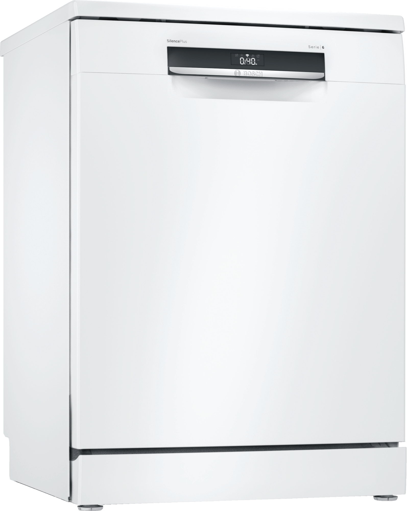 Lave-vaisselle Série 6 Bosch SMS6EDW06E.Technologie ActiveWater : Cette technologie de rinçage innovante permet d'optimiser le processus afin de mieux respecter l'environnement, et ce sans concessions sur le résultat. Les économies d'eau et d'énergie résultent d'une aspersion précise, d'une filtration améliorée, d'un chauffage plus rapide et d'une pompe plus performante permettant une meilleure circulation de l'eau. Capteur de charge : Un capteur de charge est placé dans le lave-vaisselle. Il vous permet de consommer moins d'eau et d'énergie si votre lave-vaisselle n'est pas complètement rempli. AquaStop : Chez Bosch, nous prenons soin de votre vaisselle mais nous soucions également de votre sécurité domestique. Le système AquaStop consiste en un tuyau d'alimentation à double paroi, d'une valve mécanique dans le tuyau d'alimentation et d'un affichage visuel. L'eau s'écoulant du tuyau s'amasse dans l'enveloppe du tuyau et fait gonfler une éponge ce qui arrête le débit d'eau mécaniquement. Bosch offre une protection contre les dégâts d'eau, lavage après lavage. Départ différé : La fonction Départ différé vous permet de choisir l'heure de démarrage du programme.
