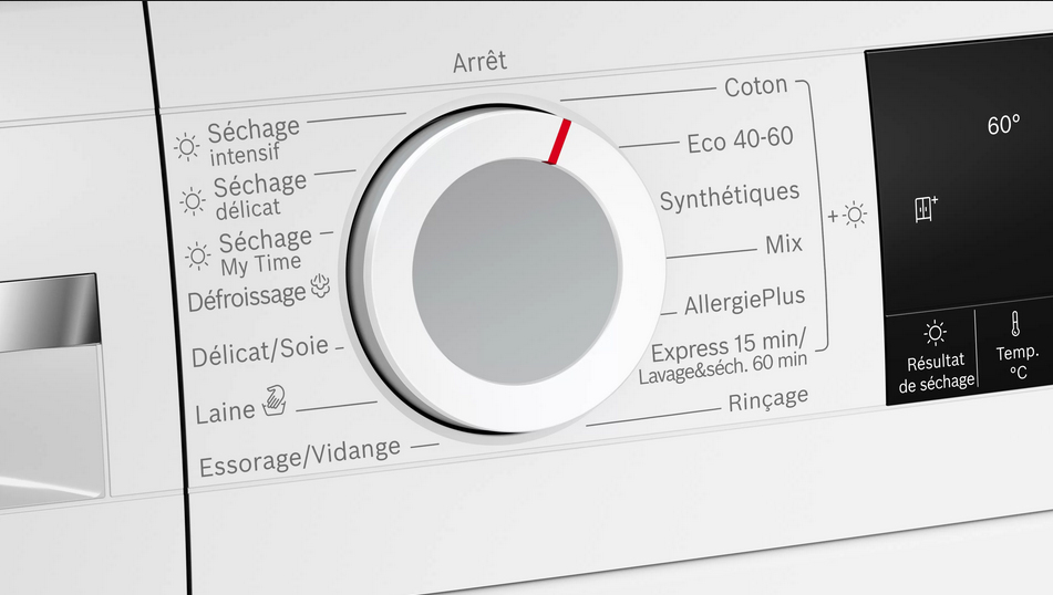 Avec le programme Lavage & séchage 60 minutes, obtenez des résultats de lavage et de séchage parfaits, en seulement 60 minutes (charge maximale recommandée: 1 kg de linge, peu sale, et résistant à la chaleur, comme le coton ou le lin).