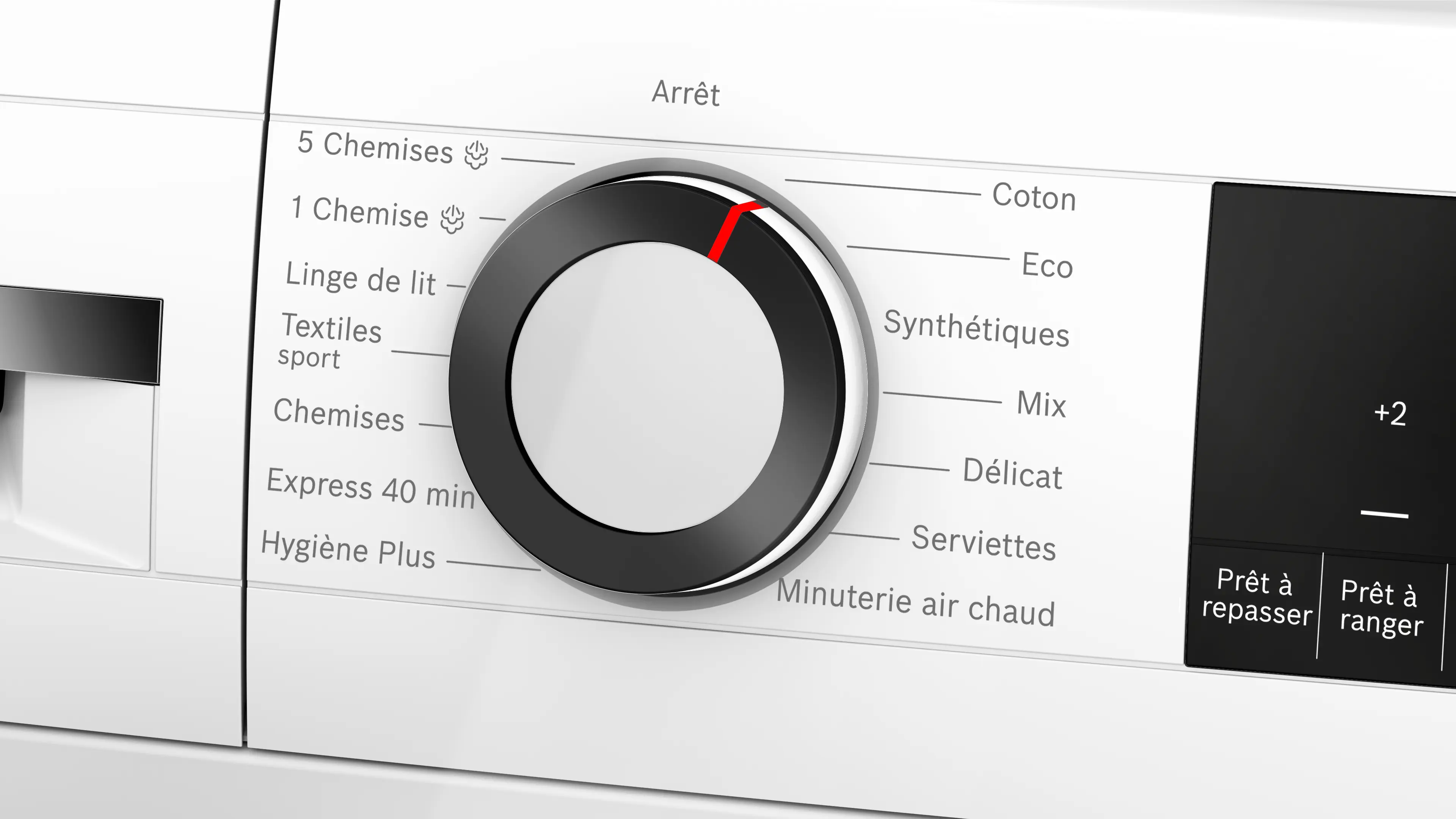 Séchage rapide 40 min, pour les petites quantités de linge en fibres synthétiques et matières fines.