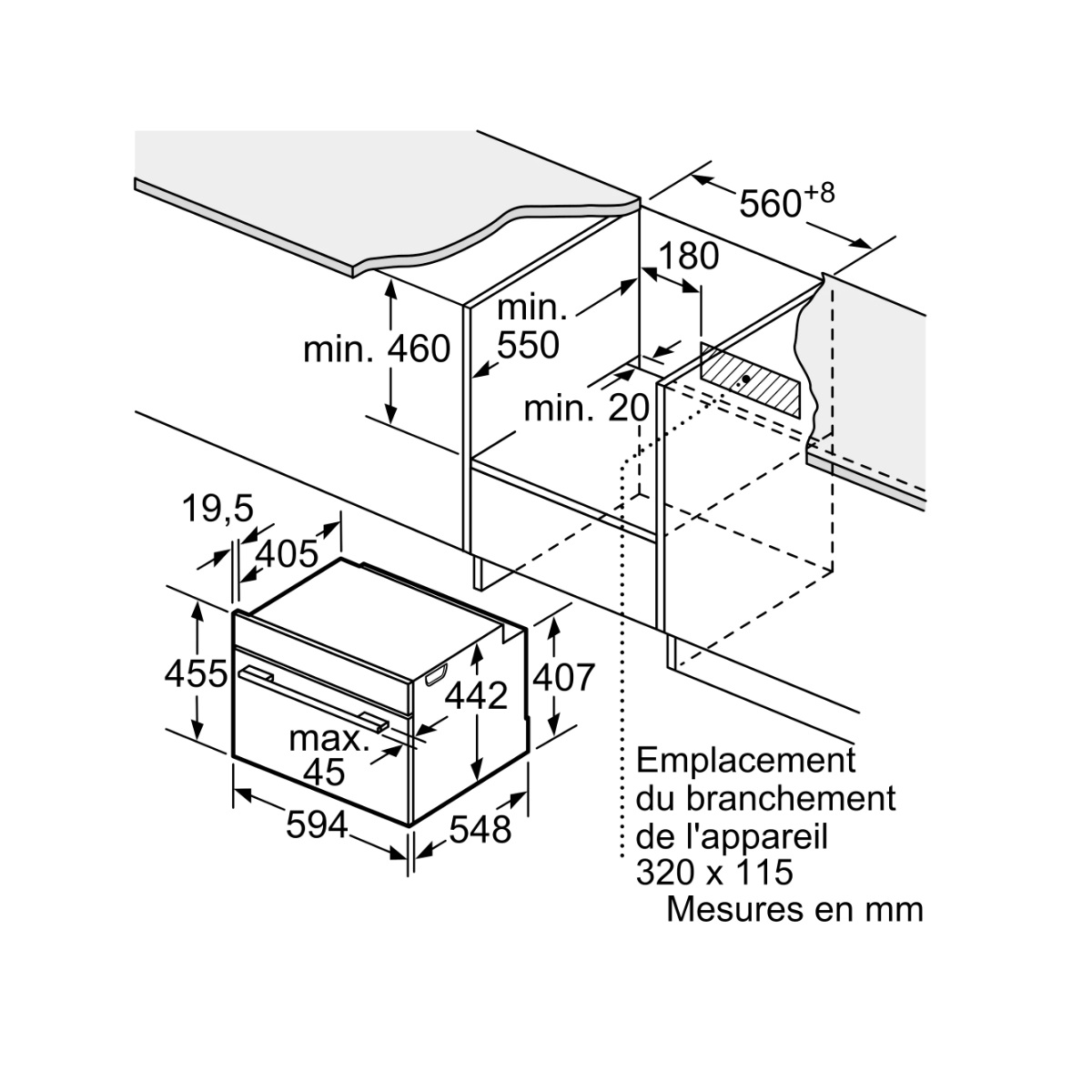 | Dimensions d'encastrement | 56.8 x 55 x 45 |