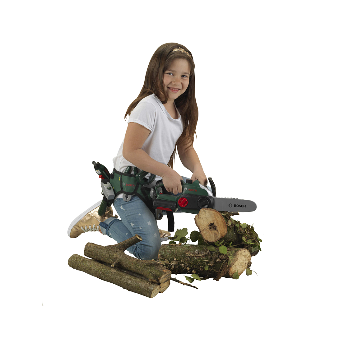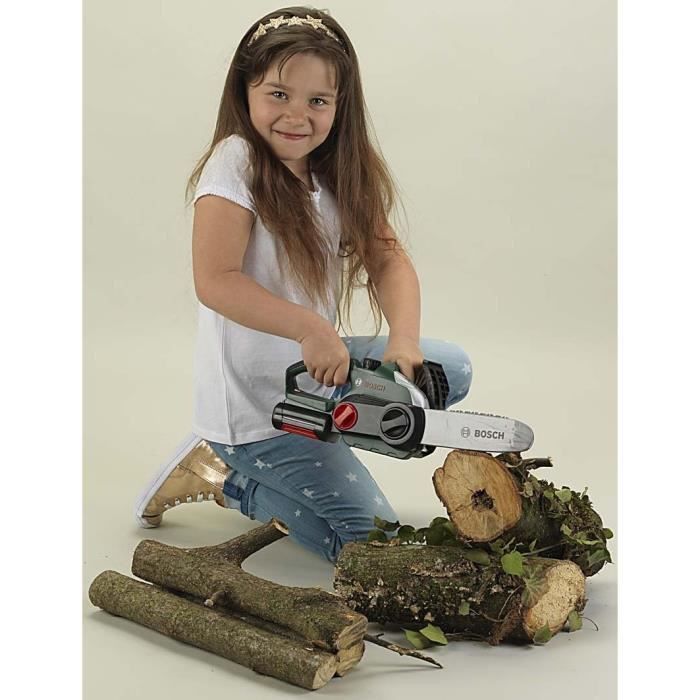 Cette tronçonneuse sous licence BOSCH est une réplique très fidèle du modèle original utilisé par les adultes. Possède des fonctions très réalistes, adaptées aux enfants : bruitage, fonction lumineuse, chaîne tournante (autour du guide). Avec cette belle tronçonneuse BOSCH, tu deviendras le meilleur bûcheron ! Dimensions:39,5 x 13 x 14 cm. A partir de 3 ans.
