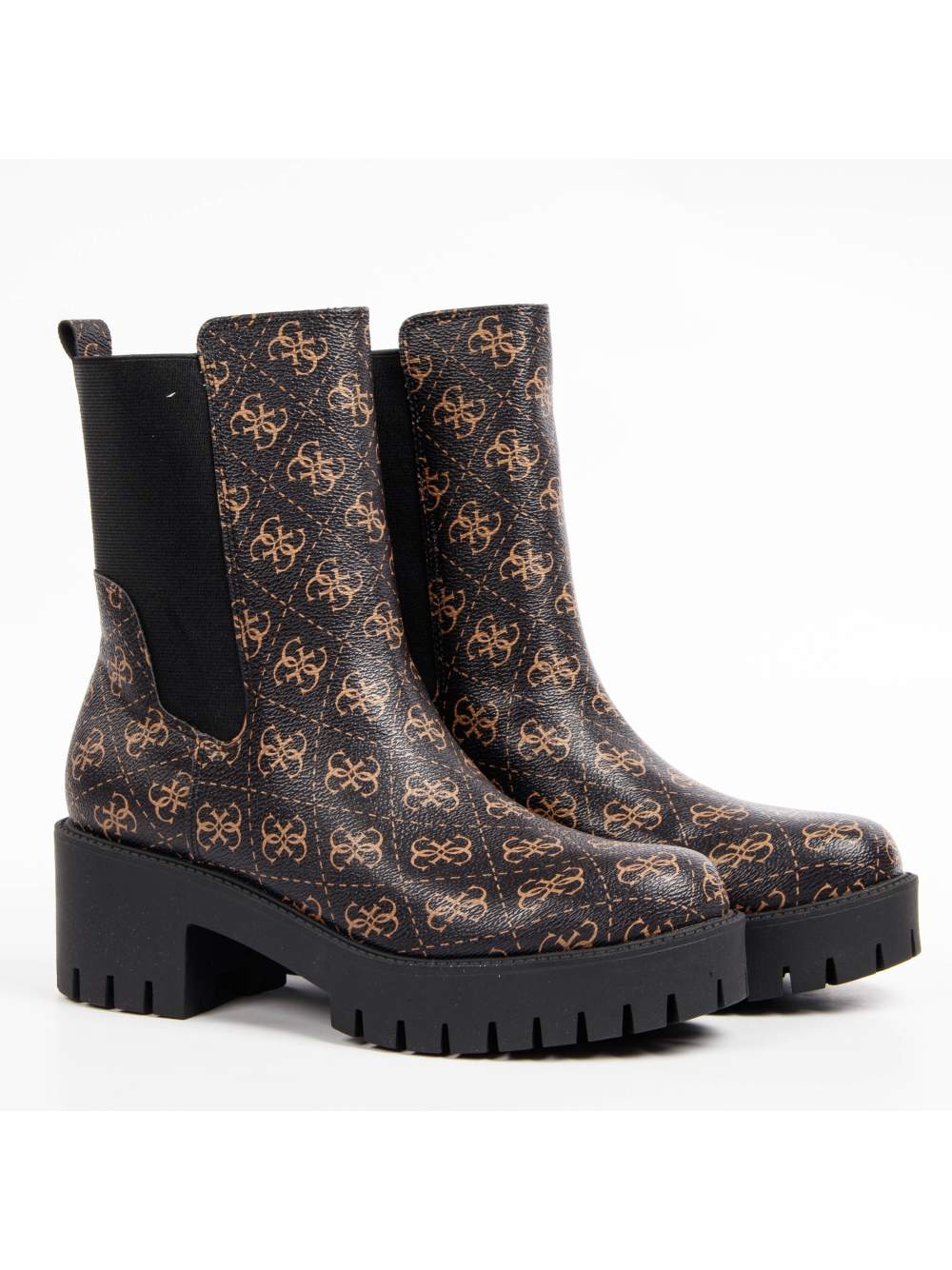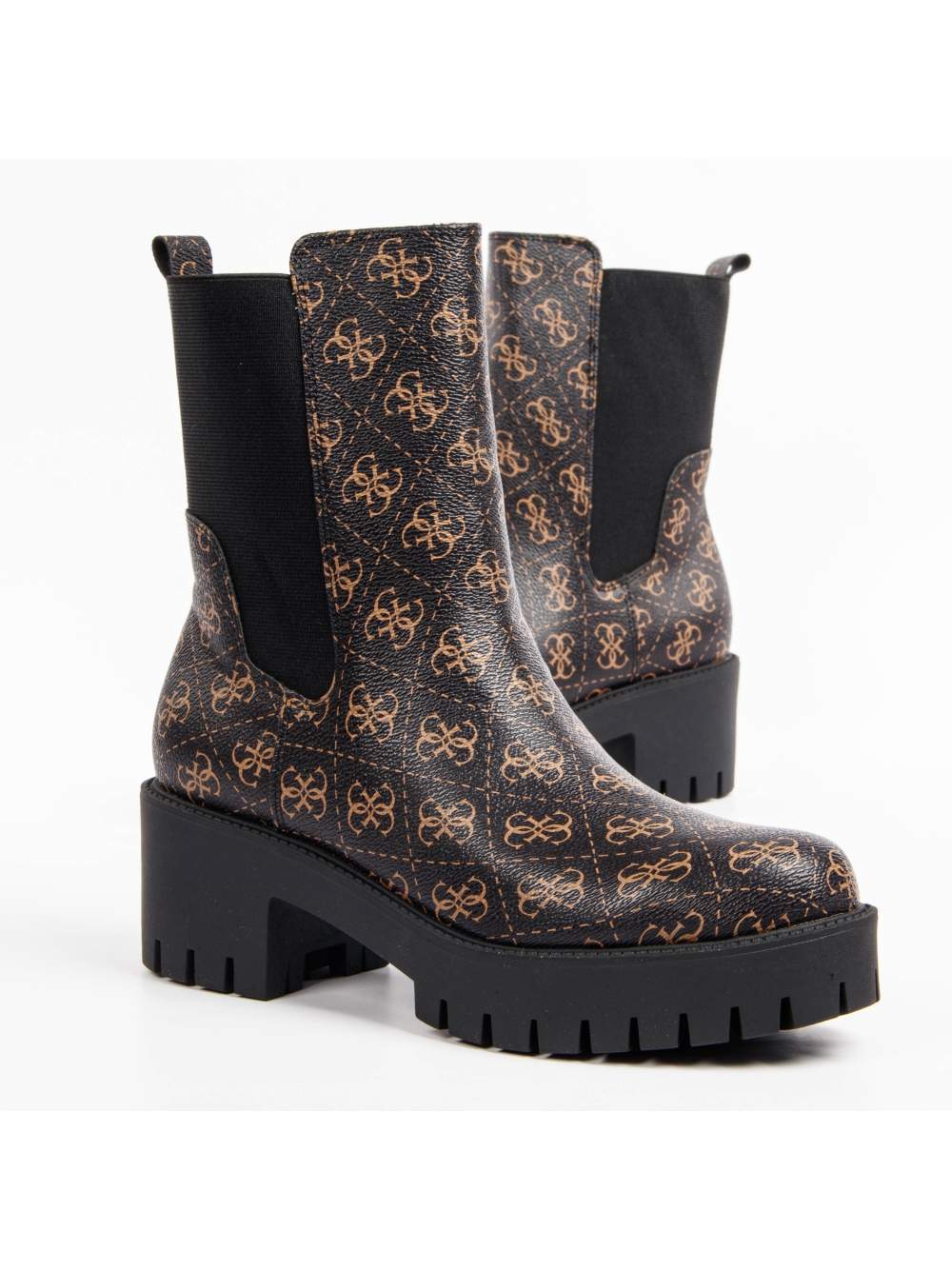 Bottine Guess Orana Femme Marron Simili Cuir. Authentique Chaussure de la marque Guess - design streetwear/sportswear de Guess - Guess pour Femme fashion, parfait pour la vie de tous les jours - Bottine Guess de couleur Marron s'associe parfaitement avec le reste de votre dressing - matiere Simili Cuir confortable - élastique classic - Orana - Synthétique