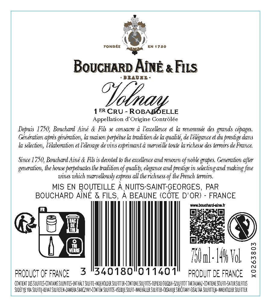 | Libellé | Bouchard Ainé & Fils Volnay 1er Cru Robardelle Bouchard, 2023 - Volnay 1er Cru AOP - Rouge - 75 cl |